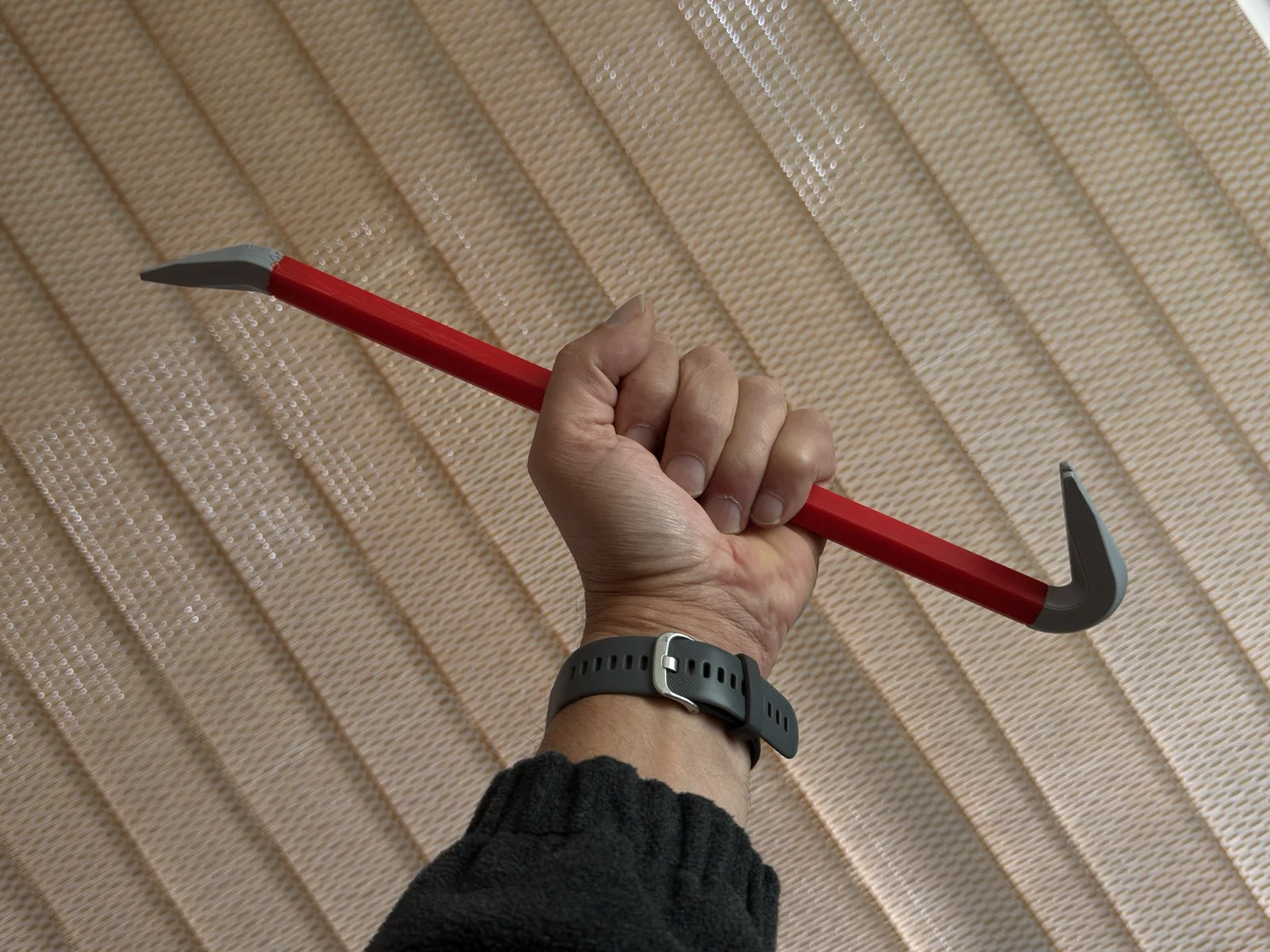 Cây gãi lưng có hình như một cây xà beng (crowbar).