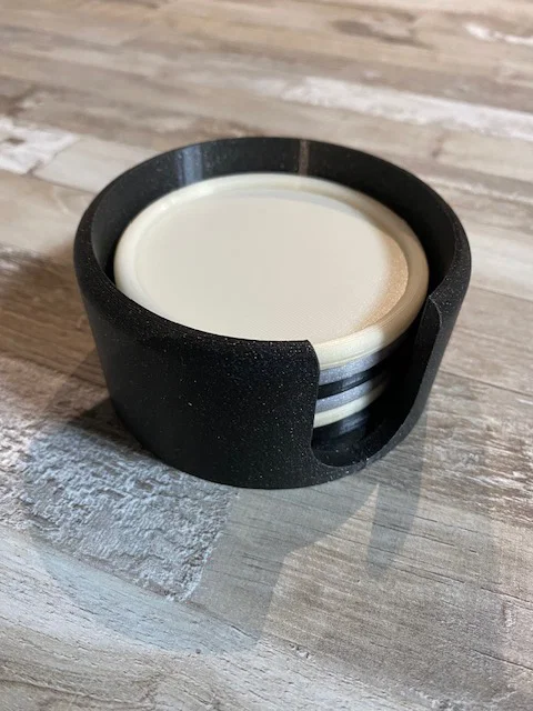 Sản phẩm bao gồm những chiếc đế lót ly hình tròn có viền nổi nhẹ để giữ nước đọng lại bên trong, cùng với một khay đựng đồng bộ giúp bạn xếp chồng các miếng lót gọn gàng khi không sử dụng. Thiết kế thông minh với phần khuyết ở thân khay giúp bạn lấy đế lót ra vô cùng dễ dàng và nhanh chóng. Đây là món đồ in 3D vô cùng thiết thực, phù hợp cho mọi không gian từ phòng khách, phòng làm việc cho đến bàn họp tại văn phòng.