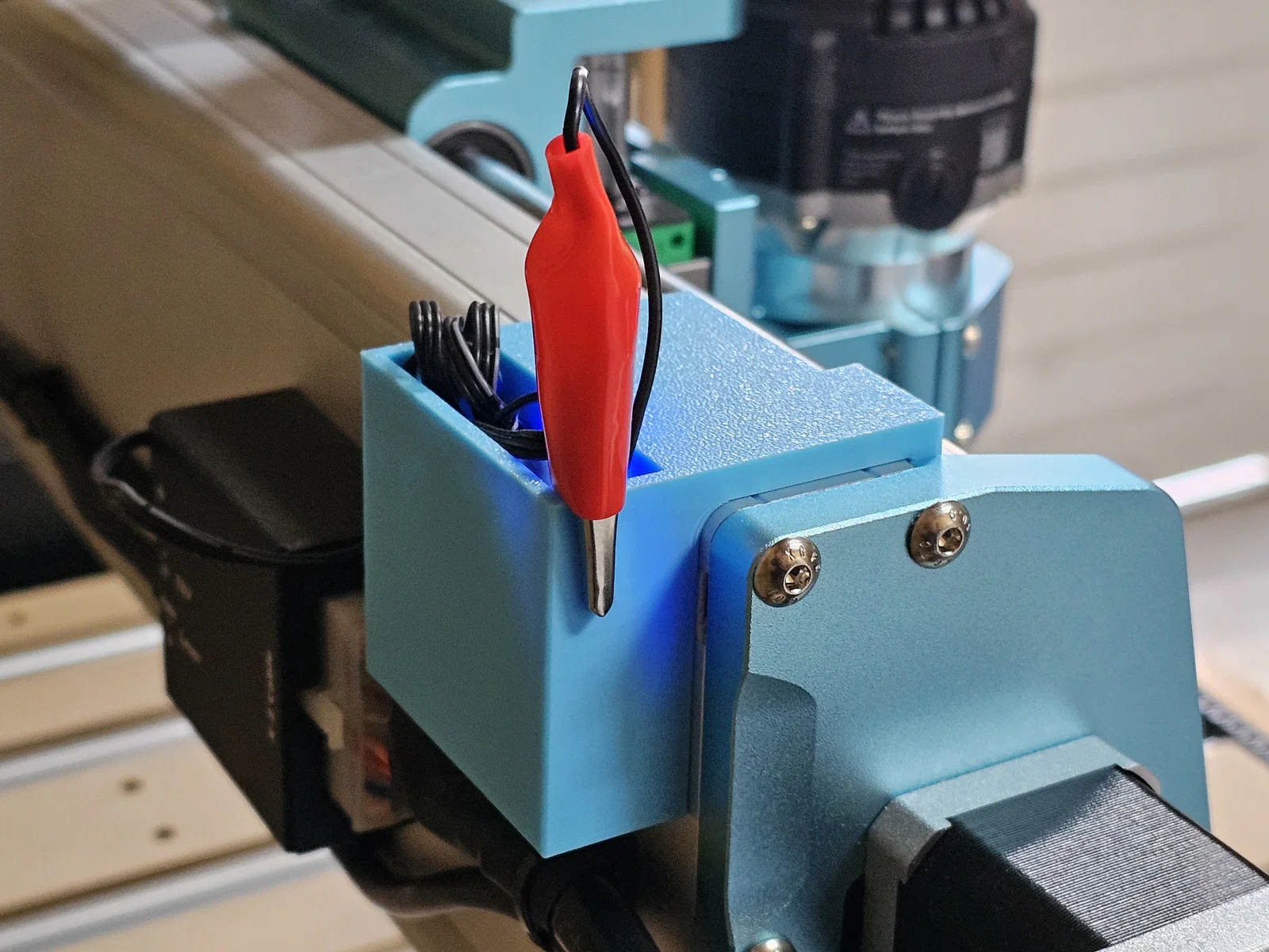 Thiết kế của giá đỡ này cực kỳ đơn giản nhưng mang lại hiệu quả cao, giúp giữ cố định đầu dò và phần dây điện gọn gàng ngay trên khung máy. Anh em có thể dễ dàng lắp đặt nó bằng băng keo hai mặt chuyên dụng, loại băng keo dùng cho thảm (carpet tape) sẽ rất chắc chắn. Đây là một món phụ kiện nhỏ nhưng cực kỳ cần thiết để tối ưu hóa quy trình làm việc, giúp góc máy CNC của anh em nhìn chuyên nghiệp và ngăn nắp hơn hẳn.