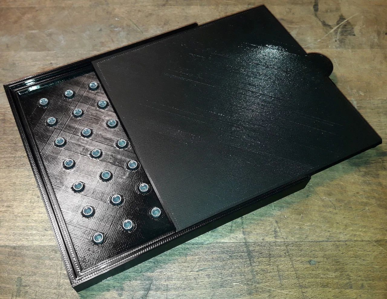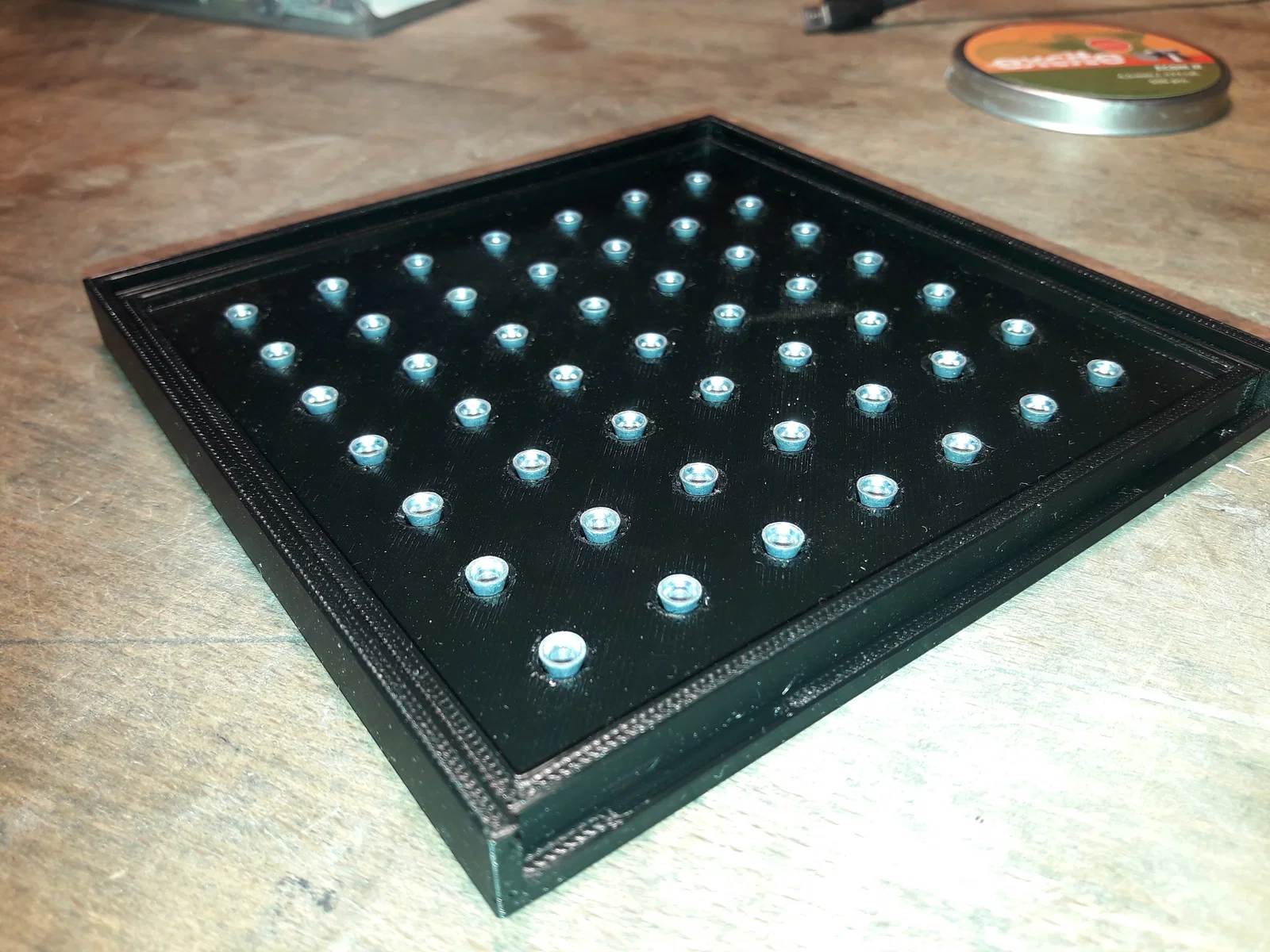 Mình thấy mấy cái shaker box bán sẵn giá hơi chát, mà lại chật chội nữa, ngón tay mình to nên lấy đạn khá bất tiện. Ban đầu chỉ định làm cái lưới (grid) rộng hơn cho dễ thao tác, rồi làm tới làm lui thành hẳn một hệ hộp modular khi nhận ra là nên có nhiều kích cỡ khác nhau tuỳ theo hình dáng và chiều dài loại pellet mình hay dùng. Tới lúc canh được hết dung sai (tolerances) và vẽ xong thì chắc mình mua đại vài cái hộp có sẵn cũng được rồi, nhưng vậy thì còn gì vui nữa?