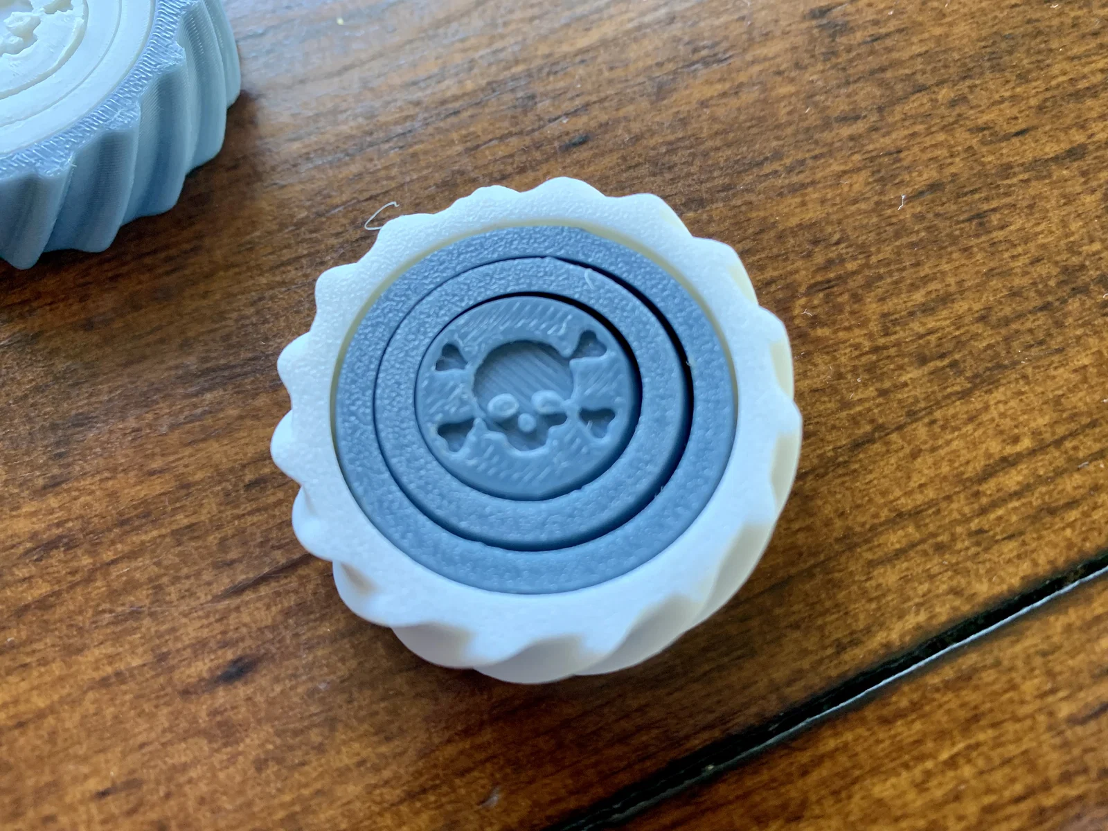 Nhẫn fidget nhỏ gọn có chi tiết đầu lâu, cực hợp làm quà hoặc đồ phát tặng mùa Halloween. Khi xoay, bạn có thể nhấn lên vòng trên để chuyển/đổi màu. Khuyến nghị in 110% nếu muốn xoay mượt hơn.