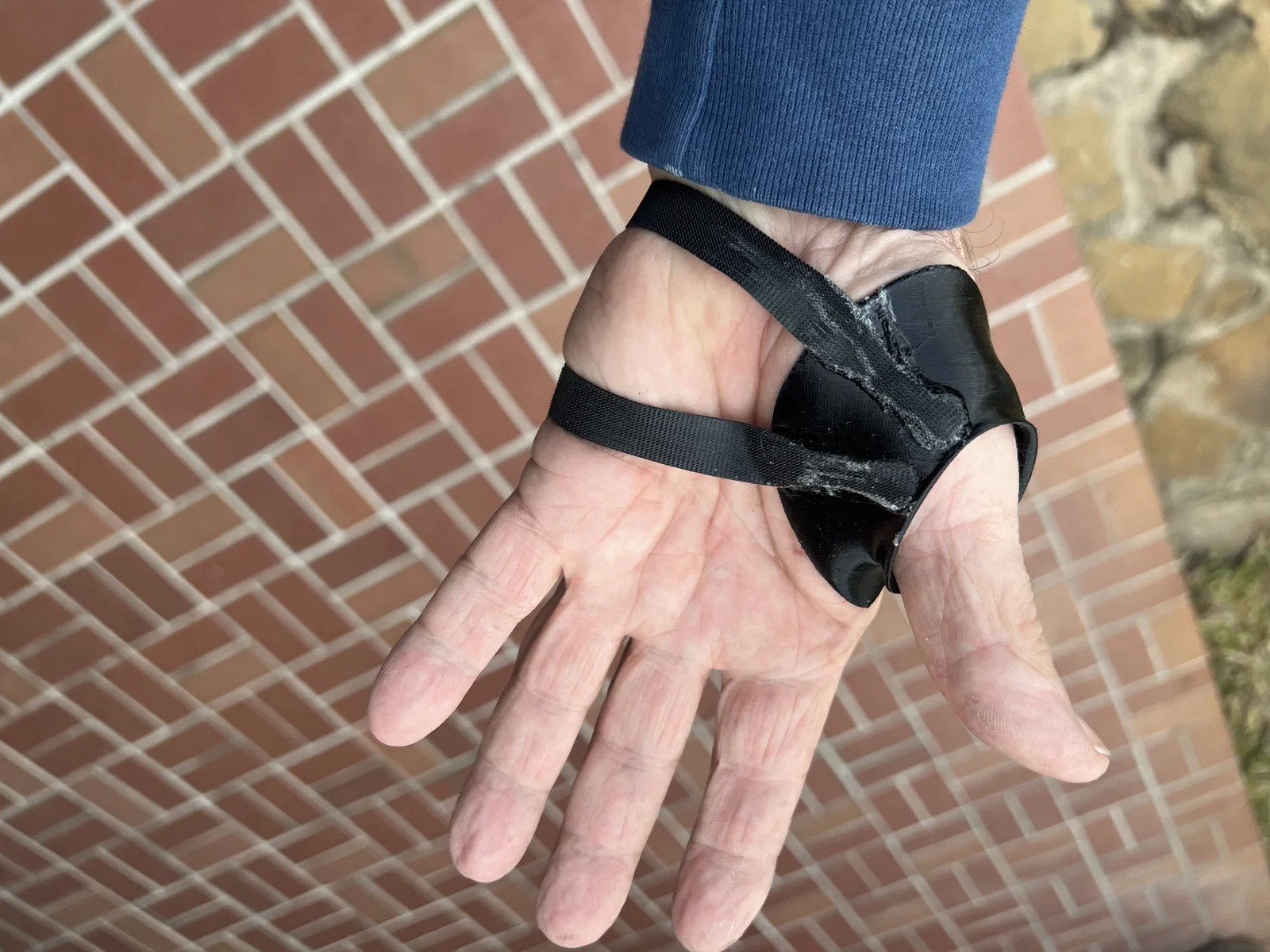 Mình bị arthritis ở ngón cái tay trái cũng vài năm rồi, nên có mang nẹp lúc có lúc không tuỳ theo mức đau; nhiều khi mình chỉ mang ban đêm thôi và thấy cũng đỡ. Mình quét 3D bàn tay trái rồi dựng mẫu này trong Fusion 360. Đeo vừa, khá êm và thoải mái. Mình có kèm bản mirror để dùng cho tay phải. Mình có dùng keo CA dán các miếng velcro lại với nhau để làm dây đeo cho dễ chịu.
