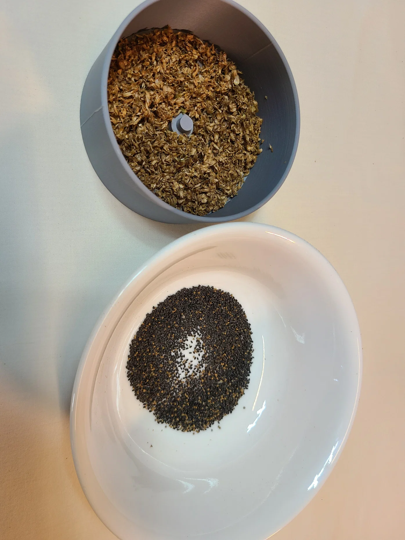Cách hoạt động đúng như bạn tưởng tượng: cho vô các cụm quả/hạt (seed pods) húng quế đã tuốt khỏi cành, đậy nắp lại, rồi quay tay. Hạt sẽ “rớt” xuống đáy như có phép thuật!