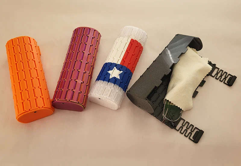 Đây là một hộp đựng kính cỡ nhỏ. Mẫu được lấy cảm hứng từ các thiết kế “living hinge” dùng cho ván ép cắt laser. Tuy nhiên, mình muốn thử nghiệm kiểu mảng bản lề cứng 3D-printed dạng print-in-place.