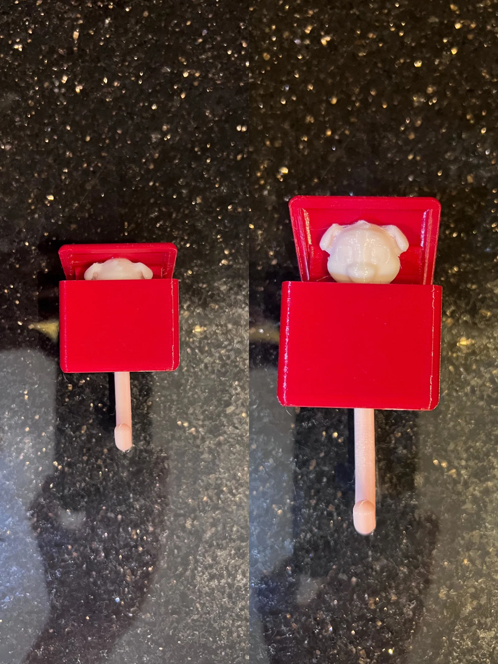 Một cái hook đơn giản để treo móc khóa; chú chó sẽ thò ra khỏi hộp khi bạn kéo cái đuôi. Remix từ mẫu cat key hook, chỉnh lại từ bản gốc bằng cách thêm đầu chó. Bạn có thể dùng file .3mf để combine printing. Dùng organic supports với ngưỡng overhang 18 độ. Dùng băng keo 2 mặt để cố định đầu chó và cái hộp lên bất kỳ bề mặt nào.