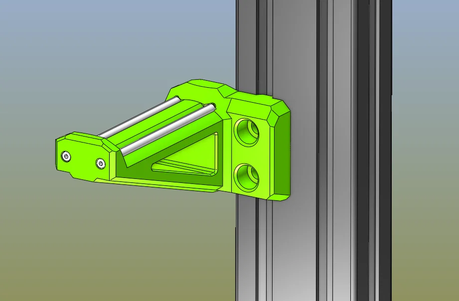 Giá treo spool cho Rat Rig V-Minion gắn phía trước, giúp đưa spool gần bed hơn và chừa trống hông profile để làm belted Z mod hoặc bản dual. Gắn bằng 2 vít M6x10/12 và T-nut M6 cho 3030; hỗ trợ spool rộng tối đa 76mm.