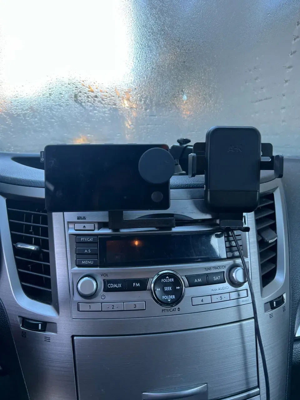 Giá đỡ CD này cho Spotify Car Thing nâng thiết bị lên và sang trái, để tránh màn hình LCD của radio trên xe.