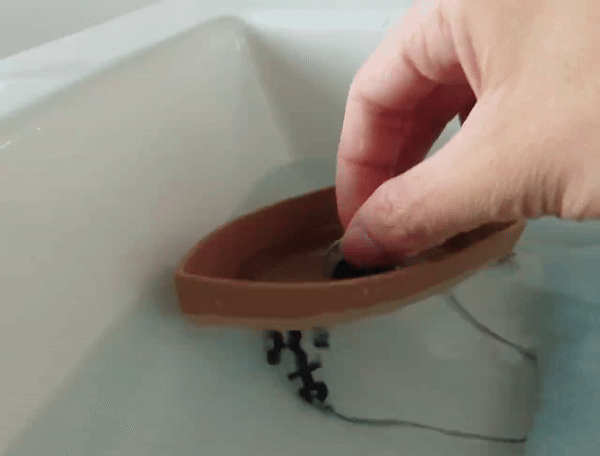 4. Ấn nhẹ con thuyền xuống để bắt đầu cho nước chảy vào