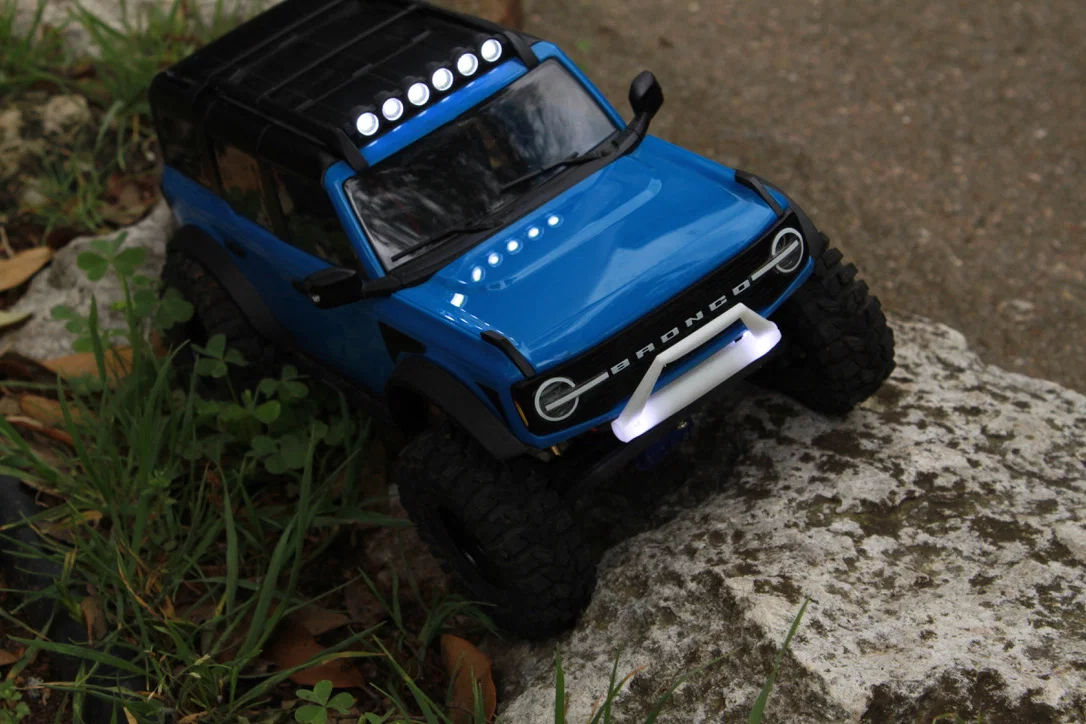 Mẫu TRX-4M Bronco Stinger Bumper là cản gầm thoáng (high clearance) cho TRX-4M Bronco, remix từ bumper của Jraaadd và Anthem17 (có ram bar) để giữ dáng nhìn như cản thật.