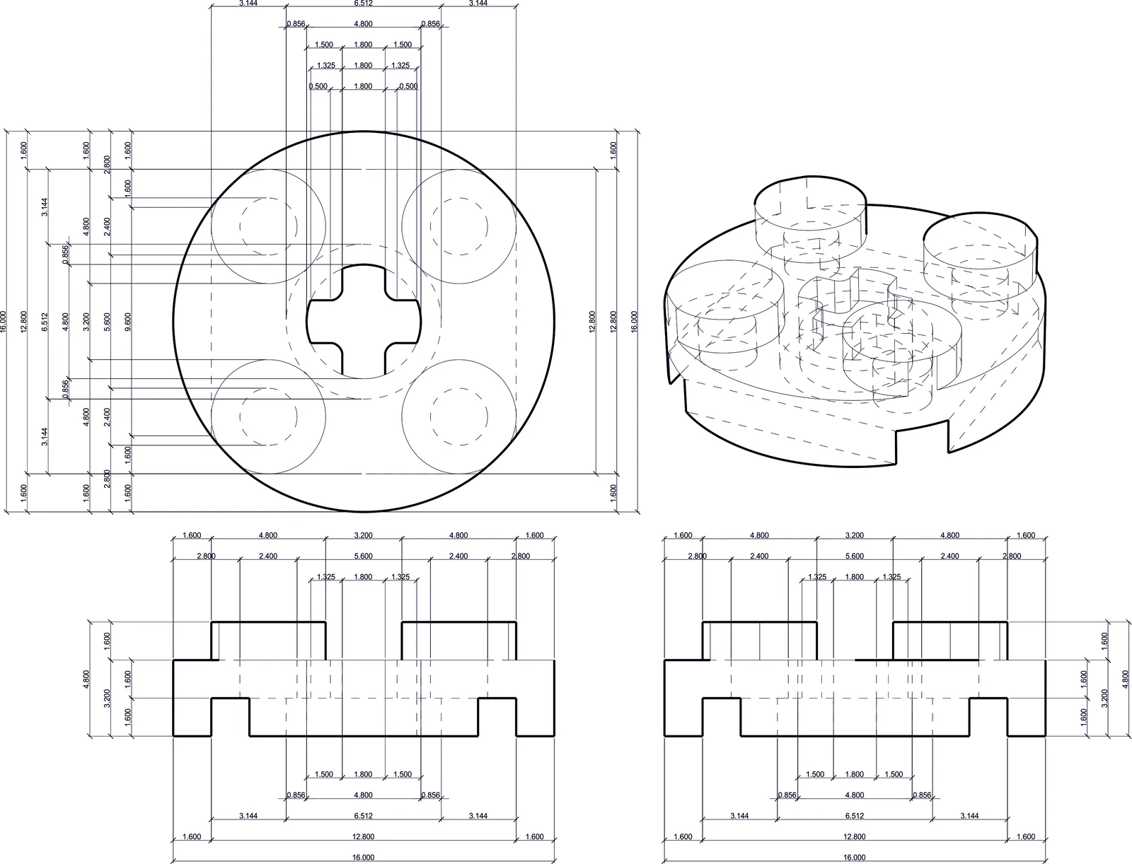Việc sở hữu khả năng tự in ấn các chi tiết thay thế giúp bạn tiết kiệm được kha khá chi phí, đặc biệt là khi bạn bị mất hoặc cần thêm một số lượng lớn các tấm tròn cho các dự án lắp ráp sáng tạo. Chi tiết này được thiết kế để khớp nối hoàn hảo với các mảnh ghép tiêu chuẩn, với cấu trúc 4 chấu ở mặt trên và các điểm khớp nối âm ở mặt dưới, đảm bảo độ chắc chắn khi bạn kết hợp chúng lại với nhau. Đây là một dự án in 3D tuyệt vời cho những ai mới bắt đầu làm quen với máy in vì hình dáng đơn giản, dễ xử lý.
