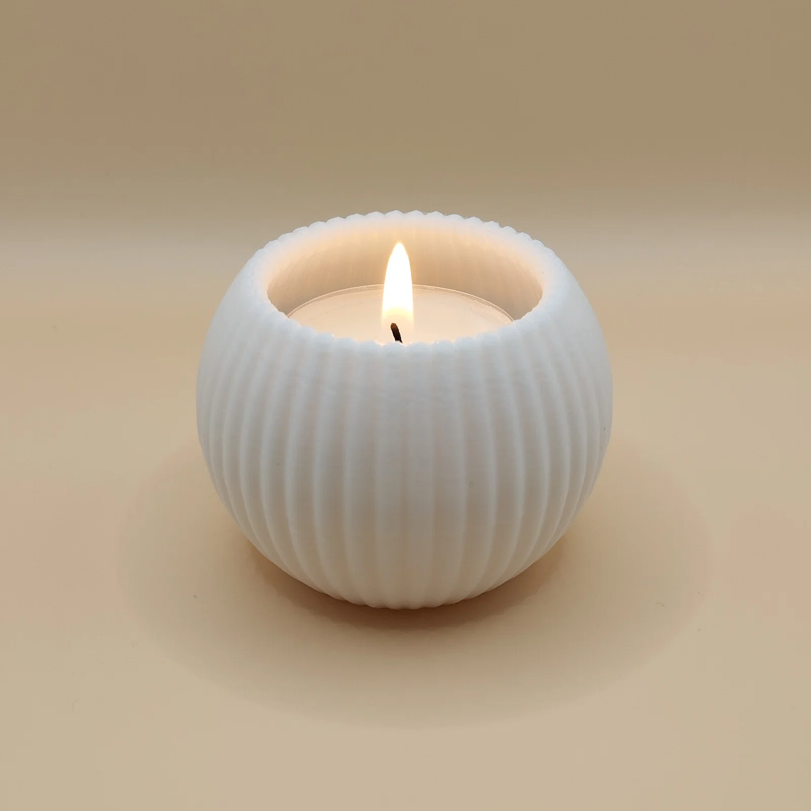 Mẫu đế tealight tròn dạng gân phong cách hiện đại, tải về 3 kích thước. Phù hợp nến/đèn tealight 40mm, 50mm hoặc 60mm. Khuyến nghị chỉ sử dụng tealight LED để an toàn.