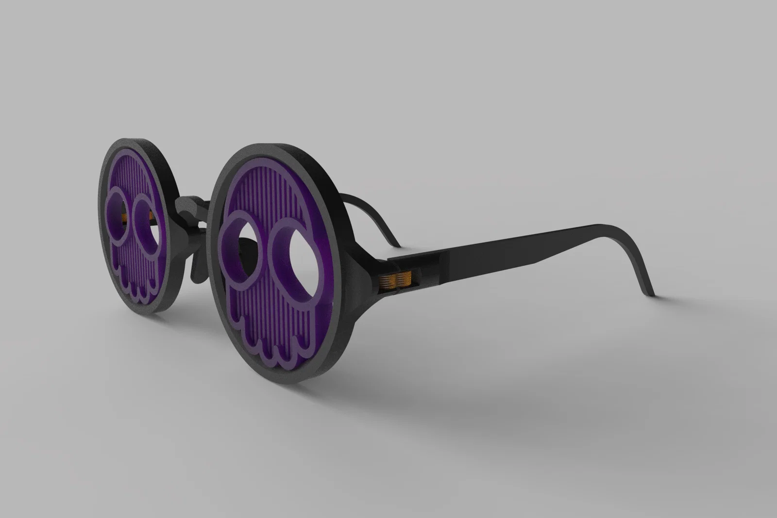 Điểm nhấn của cặp kính này nằm ở phần tròng kính được tạo hình đầu lâu đầy cá tính, kết hợp với khung kính tròn cổ điển. Bạn có thể dễ dàng tùy chỉnh màu sắc nhựa in, chẳng hạn như khung đen kết hợp với tròng tím hoặc cam để làm nổi bật chủ đề Halloween. Đặc biệt, phần gọng kính được thiết kế linh hoạt, cho phép bạn uốn nhẹ để ôm sát khuôn mặt hơn, tạo cảm giác thoải mái khi đeo trong suốt buổi tiệc.