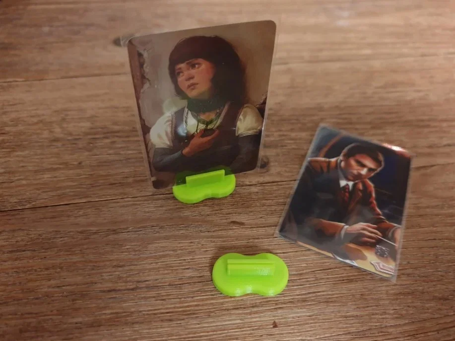 Đế (baseplate) cho nhân vật Arkham Horror LCG, có khe cắm thẻ vừa khít cho bài có sleeve với ma sát nhẹ để không làm hỏng bài/sleeve. Thiết kế giúp kẹp và kéo bài cùng đế dễ dàng hơn.