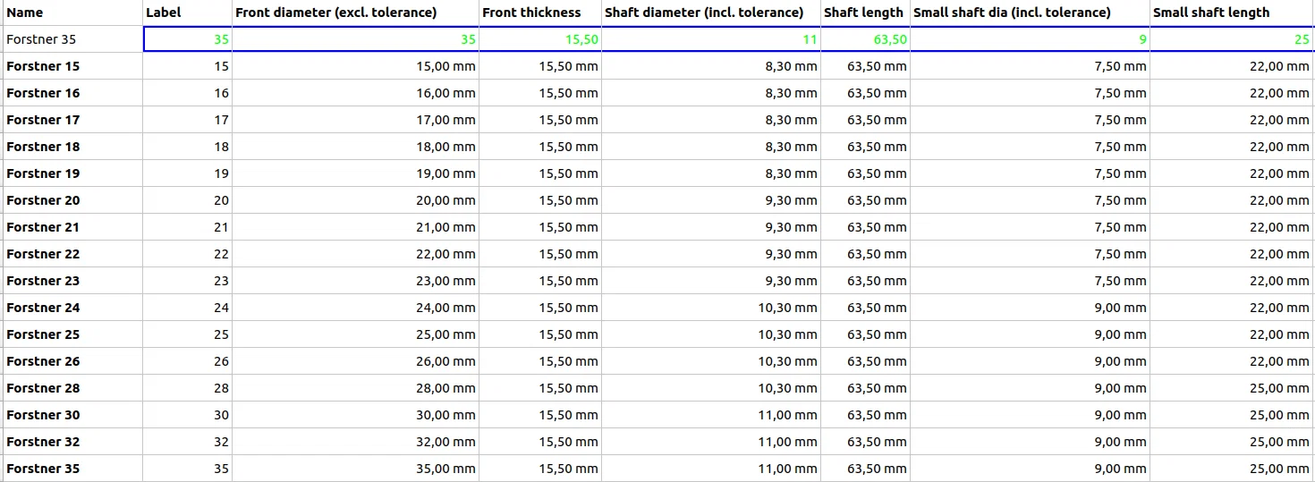 Nếu thiếu size nào đó, bạn có thể tự làm rất dễ bằng cách chỉnh spreadsheet trong file FreeCAD đi kèm (xem hình chụp trong phần ảnh). Hoặc nhắn mình kèm đúng kích thước mũi khoan của bạn, mình có thể bổ sung thêm.