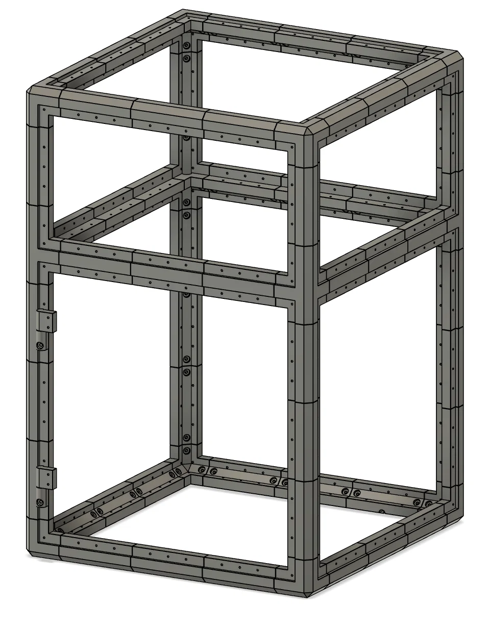 Mình đã cập nhật các chi tiết Side để có thêm lỗ bắt bản lề hoặc bắt tấm panel bên hông. Mình cũng làm thêm một chi tiết upper hinge có thể dùng với tấm panel dày ¼"; bản gốc thiết kế cho tấm 1/8" (cả hai bản đều có). Ngoài ra mình cũng thêm model để làm enclosure kiểu “stacked”. Mình chưa in các chi tiết này, nhưng trong Fusion 360 thì có vẻ khớp đúng.