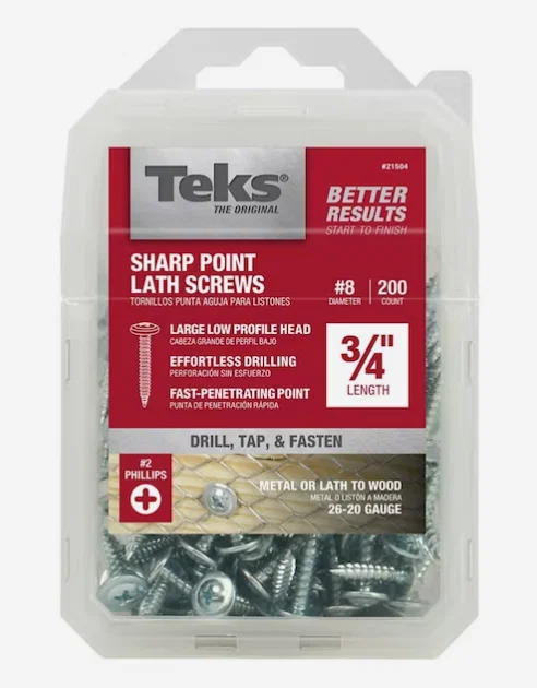 Mình thiết kế để dùng 1 loại ốc duy nhất: Teks #8 x ¾" Sharp Point Lath Screw (như hình). Riêng lower hinge cần loại dài 1-¼".