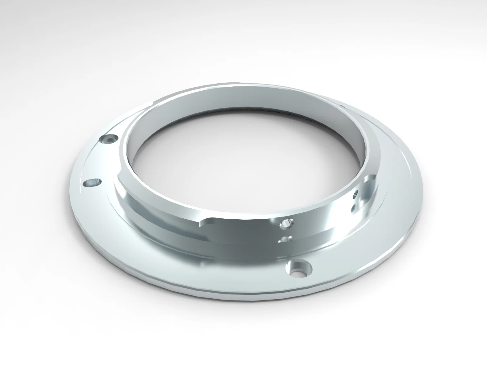 Mẫu 3D ngàm ống kính chuẩn Micro Four Thirds – phần male gắn sau ống kính. Đo thực tế từ Lumix G Vario 45-200mm bằng thước cặp Mitutoyo. Có file IGS/STEP/STL và bản vẽ kỹ thuật để tải.