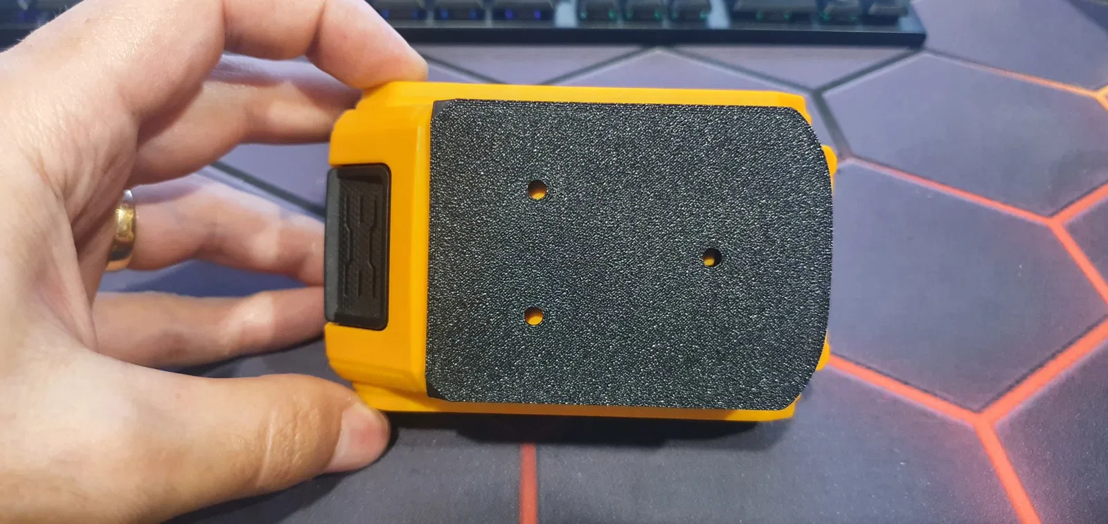 Đối với các bản in mẫu được hiển thị, tôi chỉ in cái này bằng Sunlu PLA+ và Bambu Basic PLA, trên máy in Bambu Labs X1C của tôi, in trên bề mặt PEI có kết cấu. Cần có giá đỡ chỉ cho phần nhô ra nơi pin trượt vào, rất dễ loại bỏ và đã rời ra sạch sẽ trong trường hợp của tôi. Sử dụng giá đỡ nhẹ dễ dàng gỡ bỏ. 15-25% độ đặc nên hoàn toàn ổn, những cái này được in với 20%, 4 lớp tường, 4 lớp trên/dưới - để có thêm một chút độ bền.