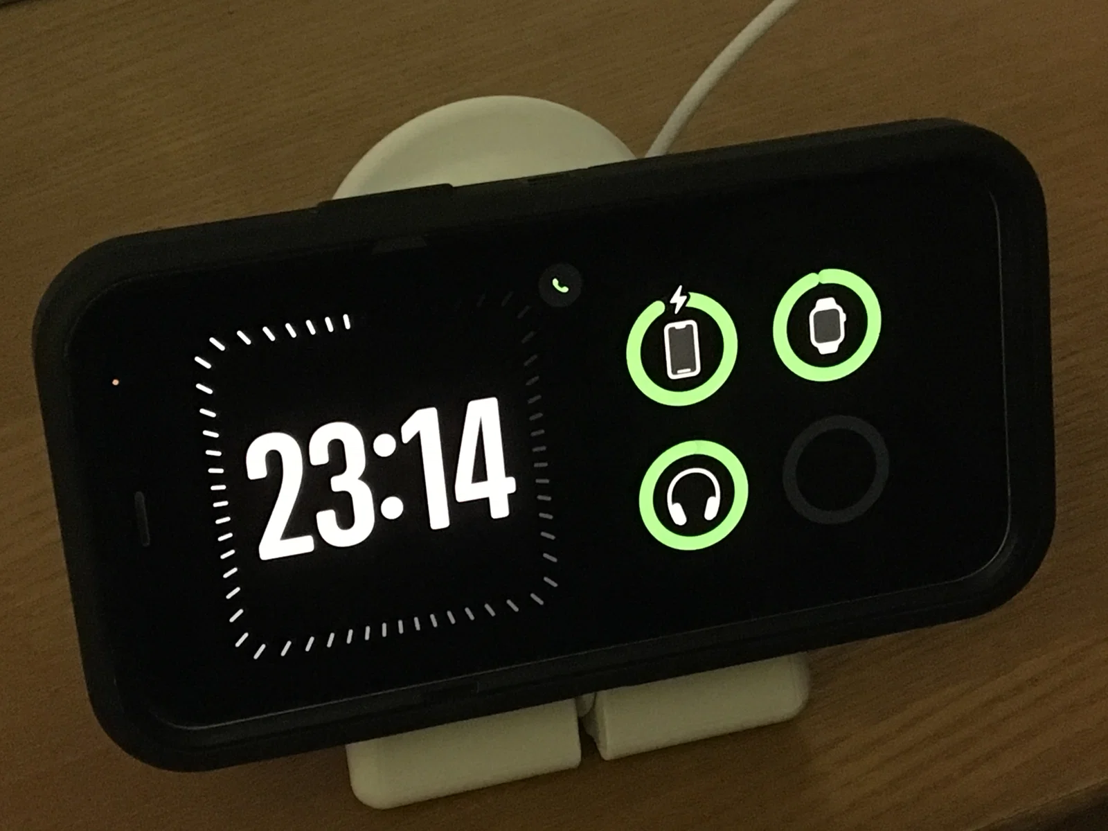 Cái stand này giúp nhìn điện thoại ở chế độ StandBy dễ hơn, và cũng dễ lấy điện thoại ra khi sạc xong.