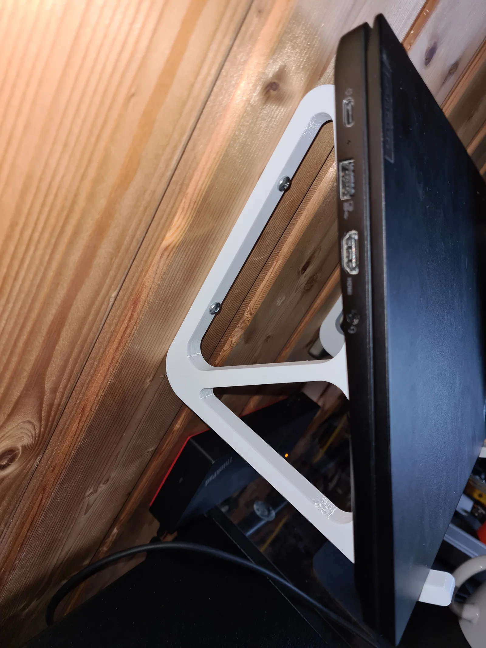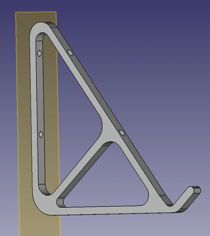 mình vừa làm xong mẫu 3D đầu tiên. Đây là một cái giá treo tường cho laptop Asus hoặc bất kỳ laptop 17" nào khác (chừa khoảng 28cm). Thiết kế nghiêng 50° nên bạn vẫn mở được màn hình và dùng bàn phím bình thường. Nếu bạn scale xuống 85% thì có thể dùng cho laptop 15".