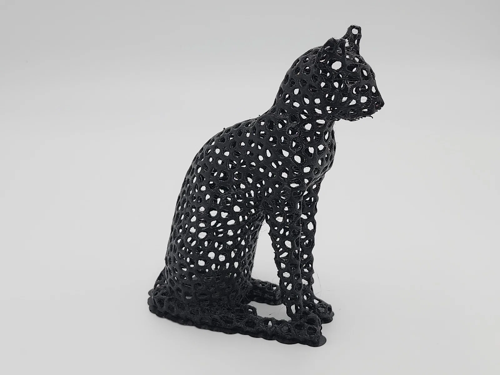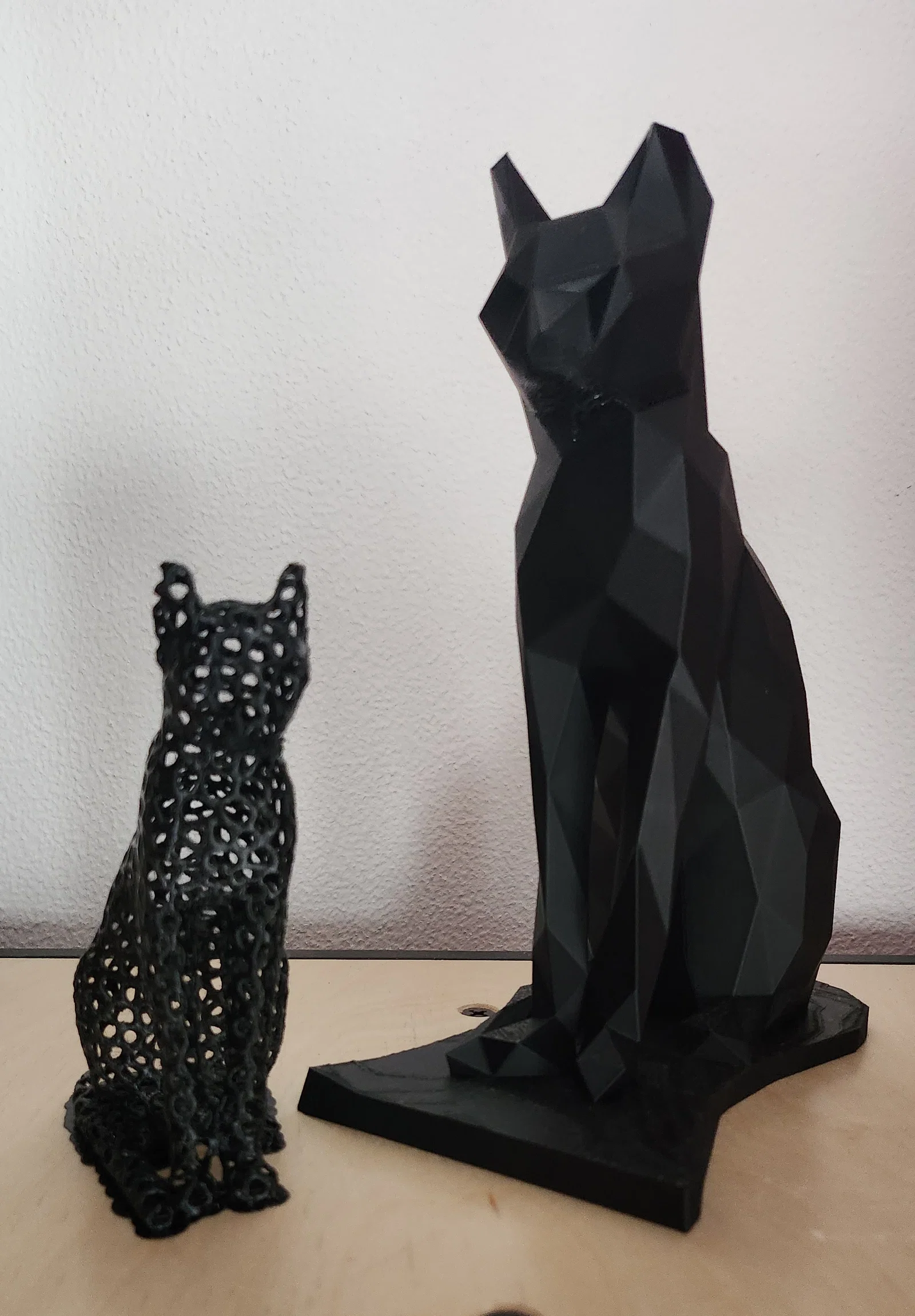 Mẫu Voronoi “Gayer-Anderson Cat” từ The British Museum, nguồn gốc liên quan đến các kim tự tháp Ai Cập. File .obj được xử lý bằng OpenSCAD và MeshLab; phần cằm cần support và nên dùng brim khi in.