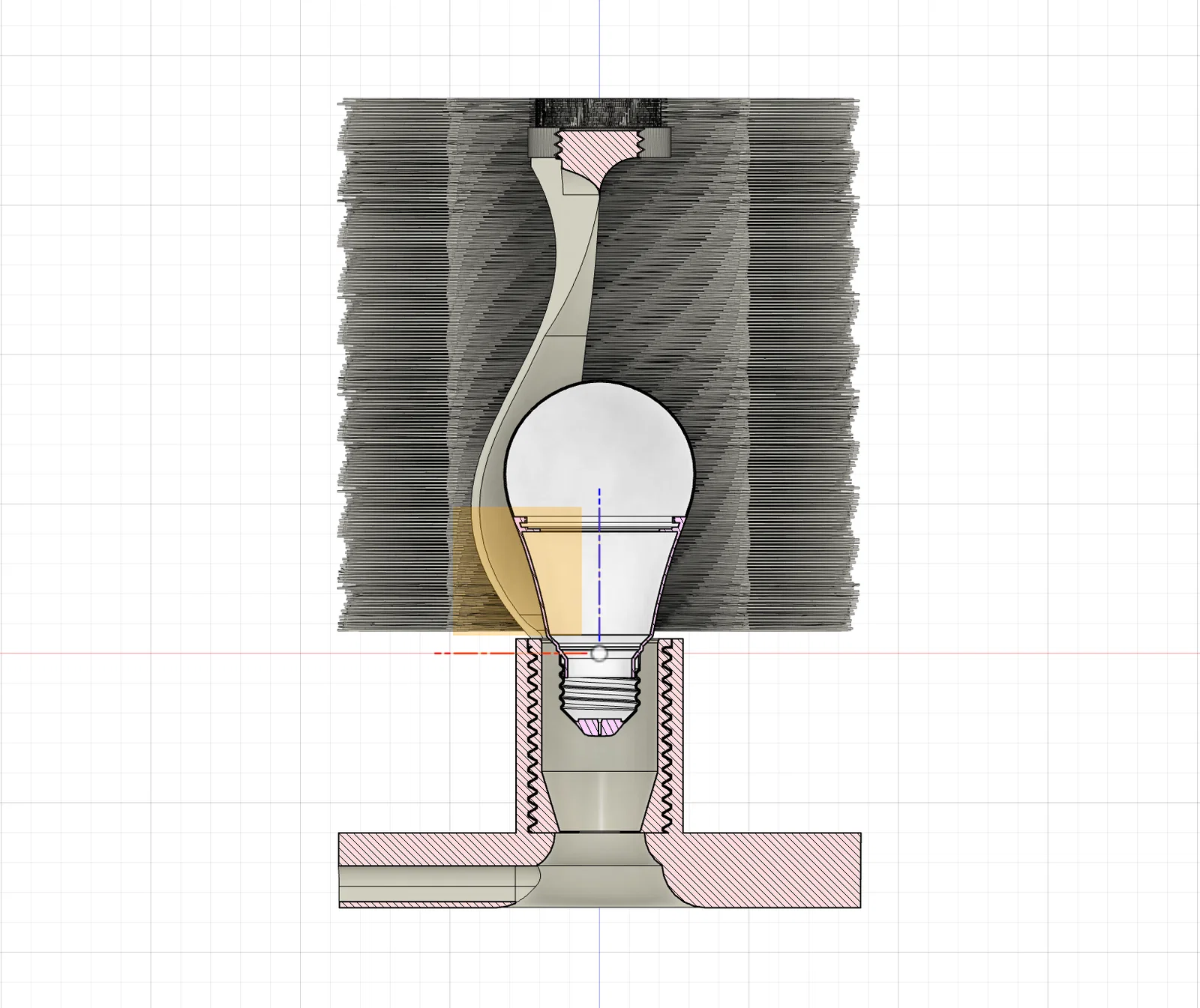 Mình đã tùy chỉnh lại để đèn có thể tự đứng vững, biến nó thành một chiếc đèn in 3D hoàn chỉnh được hỗ trợ từ phía dưới.