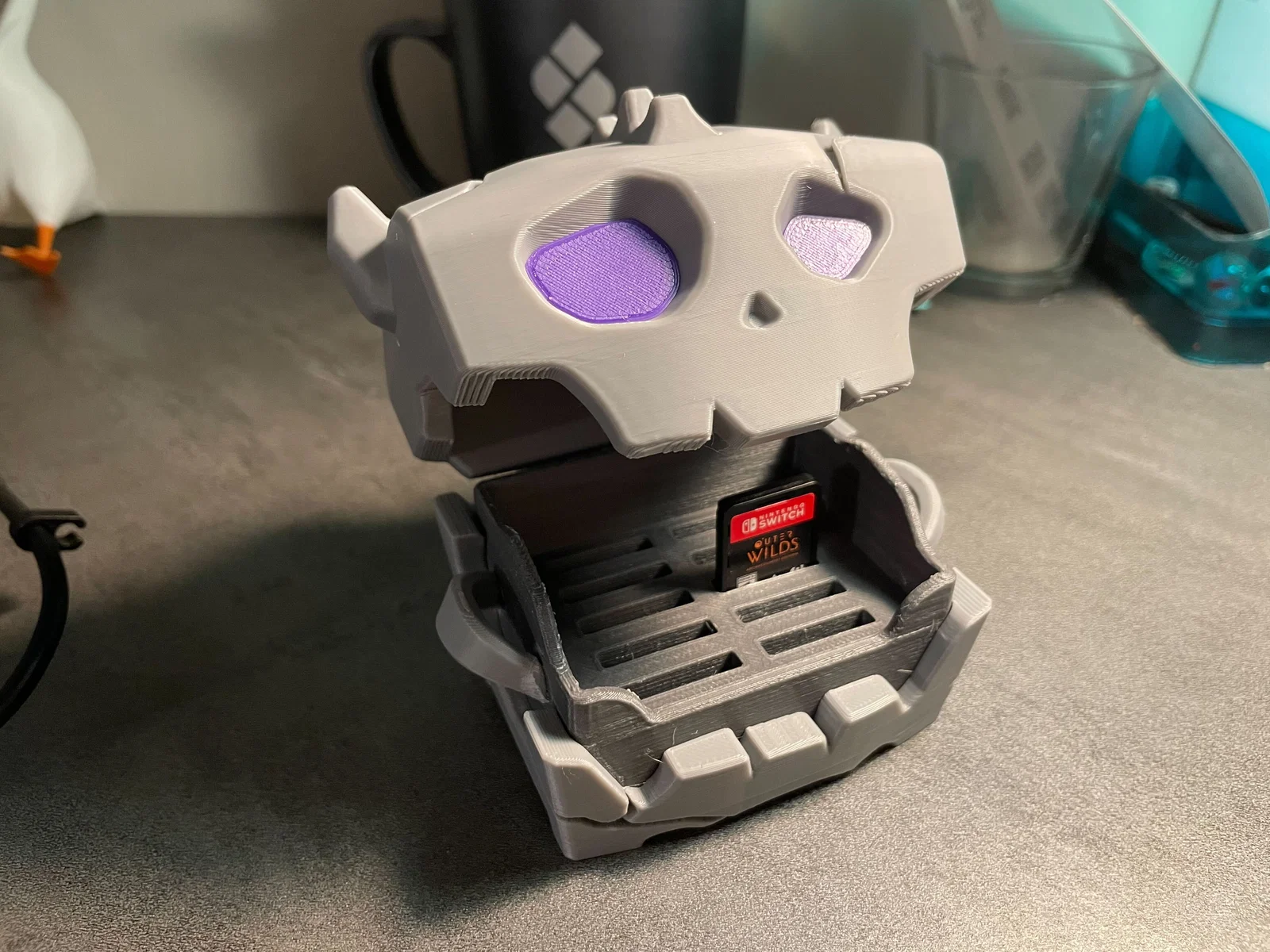 Hộp đựng Switch Cartridge hình rương Bokoblin biểu tượng trong Zelda: BotW. Thiết kế tách 2 màu thành các part riêng để in không cần MMU hay sơn. Support đã set sẵn trong file 3MF, chỉ việc slice và in.