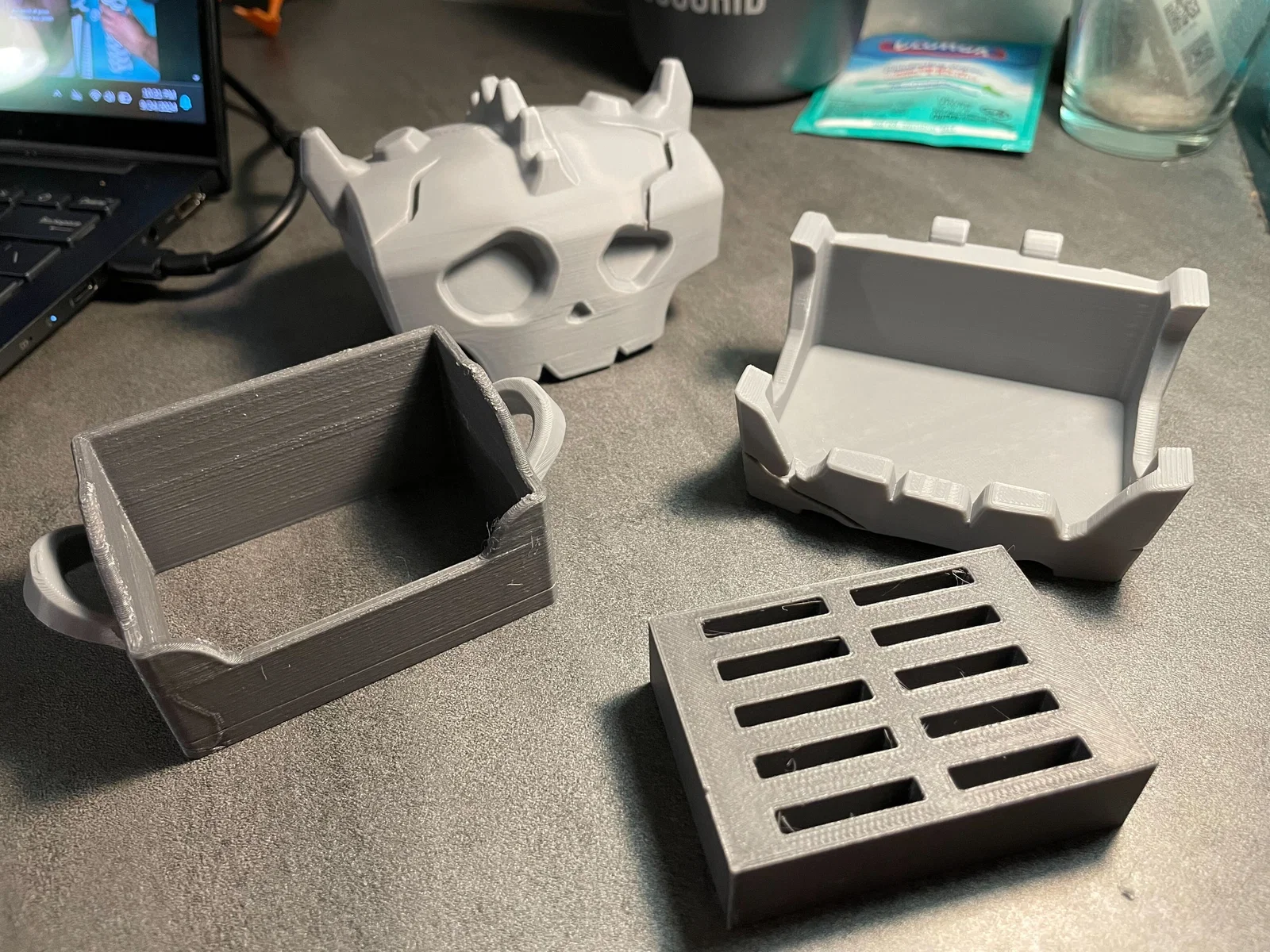 Đây là cái rương quái vật trong trại Bokoblin từ Breath of the Wild. Mẫu này là bản remix từ một số model có sẵn trước đó. Điểm chính mình chỉnh là tách 2 màu riêng ra thành từng part riêng biệt để có thể in mà không cần MMU hay phải sơn.