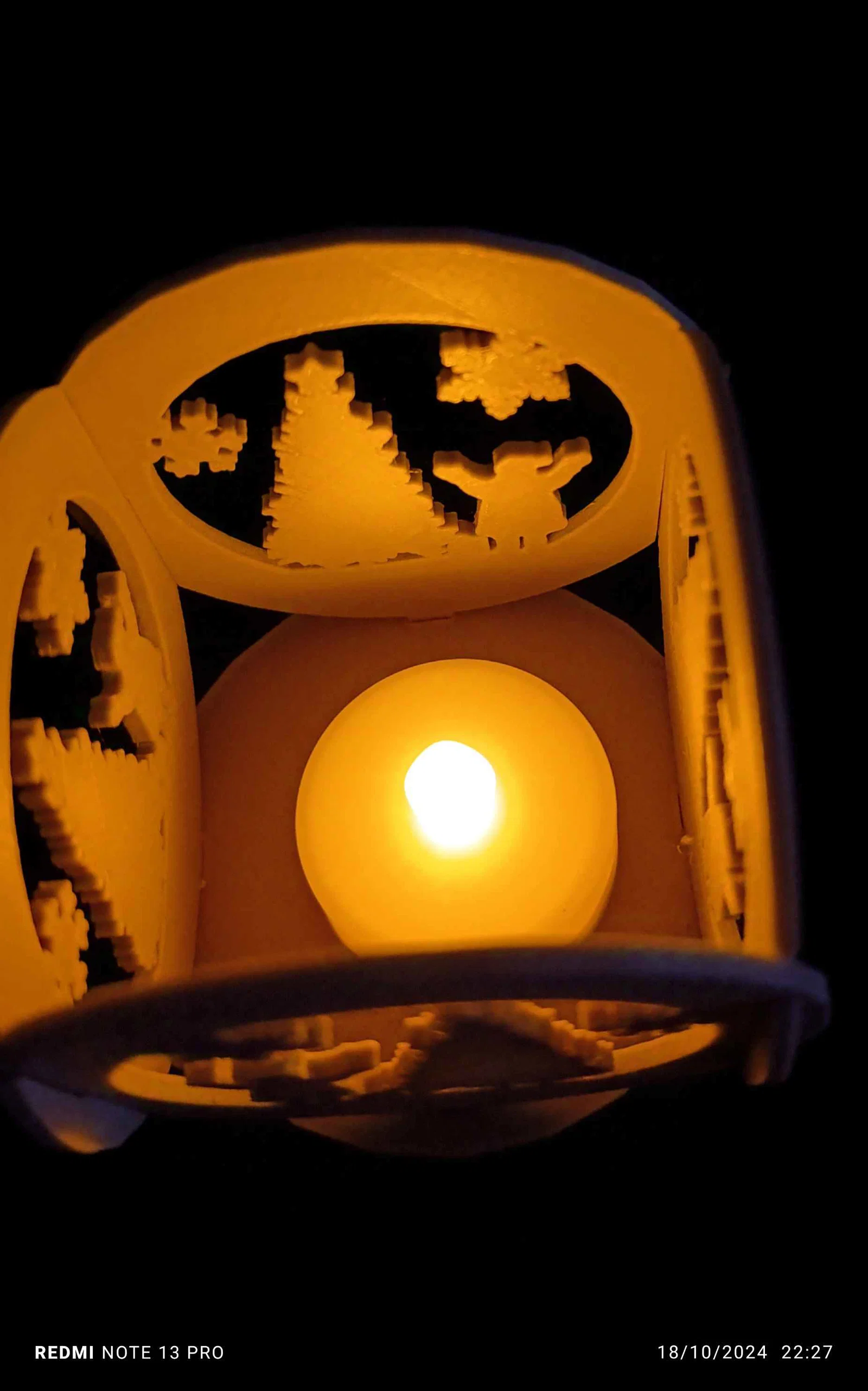 Một mẫu in 3D đơn giản dạng tri dimension cho nến tealight Giáng Sinh. Bạn có thể dùng bất kỳ cỡ nến nào bạn muốn, miễn là nó nằm vừa và chiếm phần đế của món này.