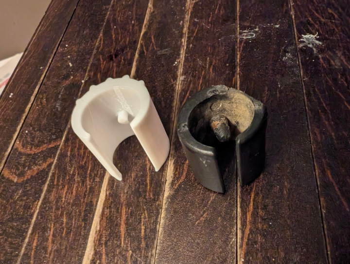 Đây là một chi tiết thay thế bằng nhựa để bảo vệ phần chân/đế của giá phơi quần áo (clothes dryer stand). Xem hình minh hoạ. Mình dùng PETG.