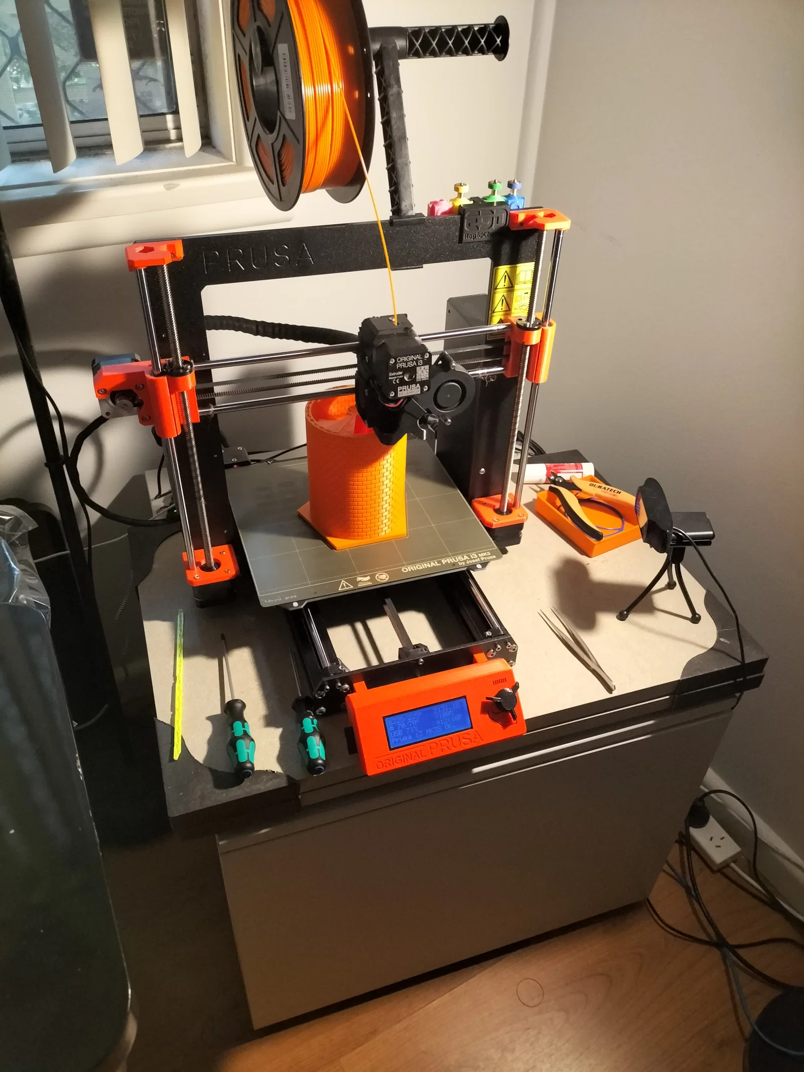Lưu ý… vì mẫu này khá cao và in lâu, nhớ kiểm tra extruder của bạn có đi lên tới tận đỉnh máy in mà không bị vướng gì không… Không có gì bực bằng việc mất nguyên một bản in cả ngày ngay ở mấy bước cuối.
