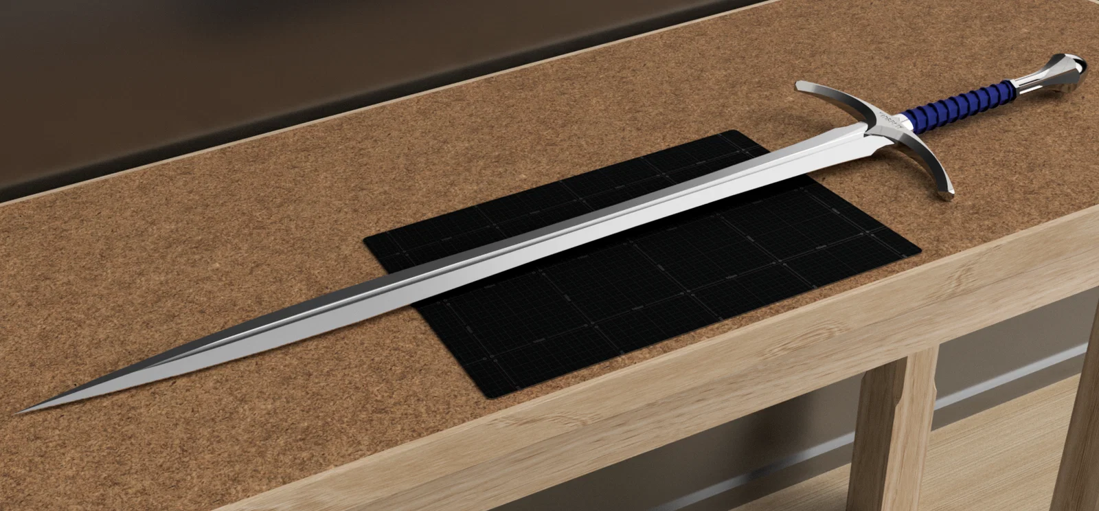 Replica thanh kiếm Glamdring của Gandalf (LOTR), chia lưỡi 150mm và có kênh gia cường để luồn ống/thanh carbonfiber. Có bản chuôi kèm rune, cập nhật 3MF/Gcode cho Mini và thêm STL V2 với kênh lục giác 4mm đôi.