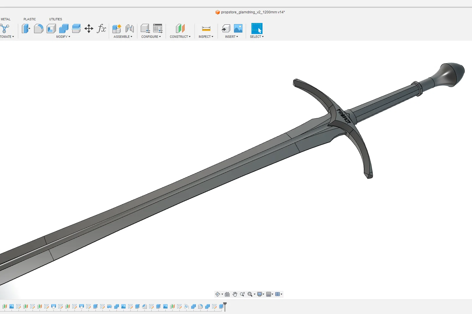 Đây là bản đang làm dở (work in progress). Ở thời điểm đăng lần đầu thì vẫn còn thiếu một vài chi tiết hoặc đang được làm đơn giản hoá. Phần rune trên đoạn vát (chamfer) của chuôi kiếm hiện chưa có, vì mình đang loay hoay tìm đúng font TrueType tương thích với Fusion.