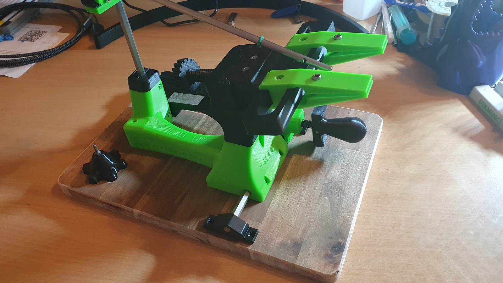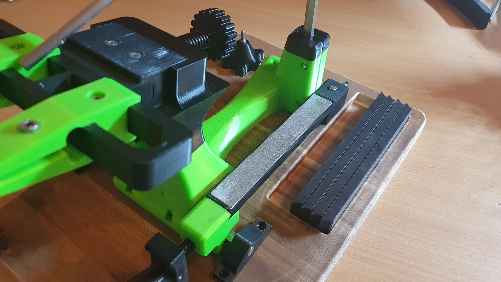 Mẫu “Design Knife Sharpener” in 3D có cơ chế xoay (rotation), vừa hiệu quả vừa đẹp. File STL đầy đủ và có kèm STEP cho toàn bộ cụm. Dùng đá mài kim cương 160x20mm và cần 2 lò xo nén theo kích thước cho sẵn.