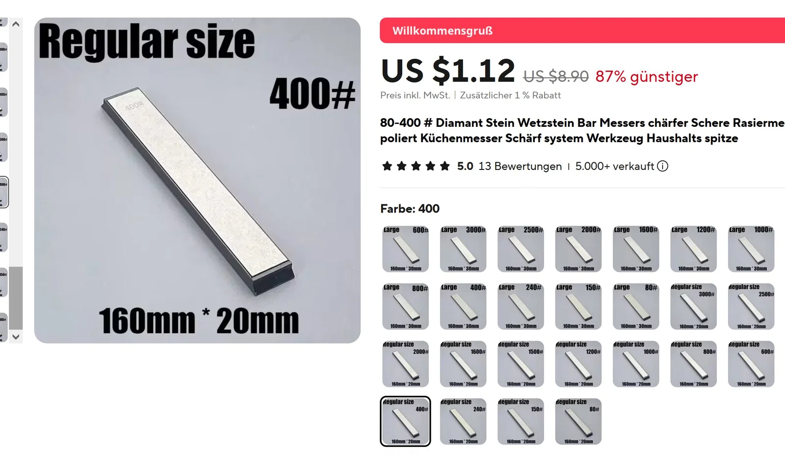 Standard diamond grinding stones in 160x20mm are used, which can be bought at Alixpress for little money per piece!