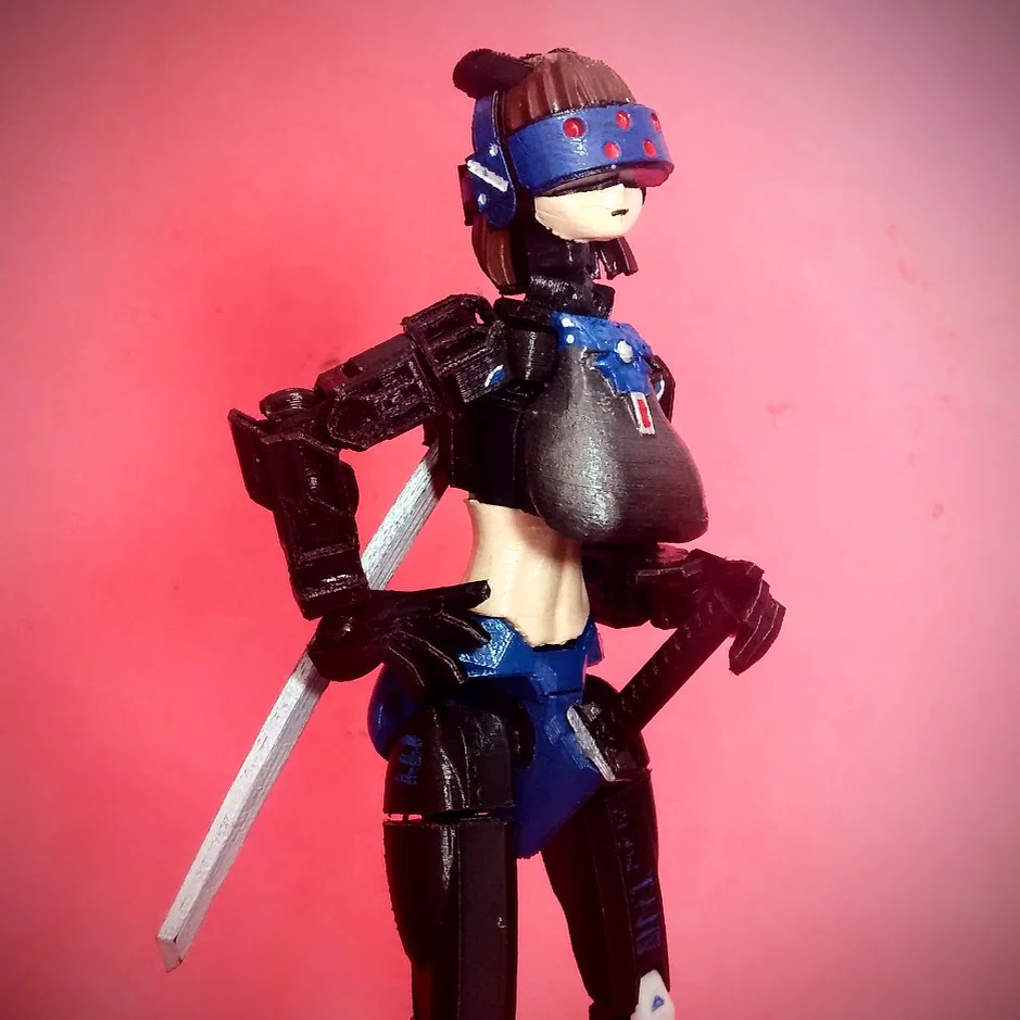 Chỉnh sửa đơn giản để thêm một cái croth holster giống với artwork này: https://www.artstation.com/artwork/aod6x0 . Mình cũng thêm một cây Tanto, chỉnh từ katana vì mình không muốn một thanh kiếm dài lủng lẳng giữa hai chân của nhân vật.