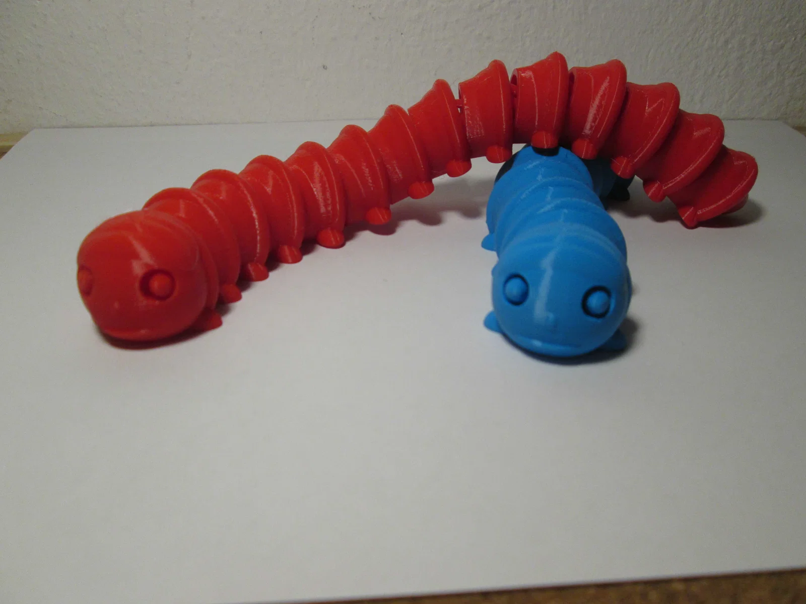 Flexible Caterpillar linh hoạt, dễ thương, hợp làm quà tặng. Có 4 phiên bản 8/10/12/14 (số là số khớp). Khuyến nghị in PLA trên PEI, infill gyroid 15%, supports: NO.