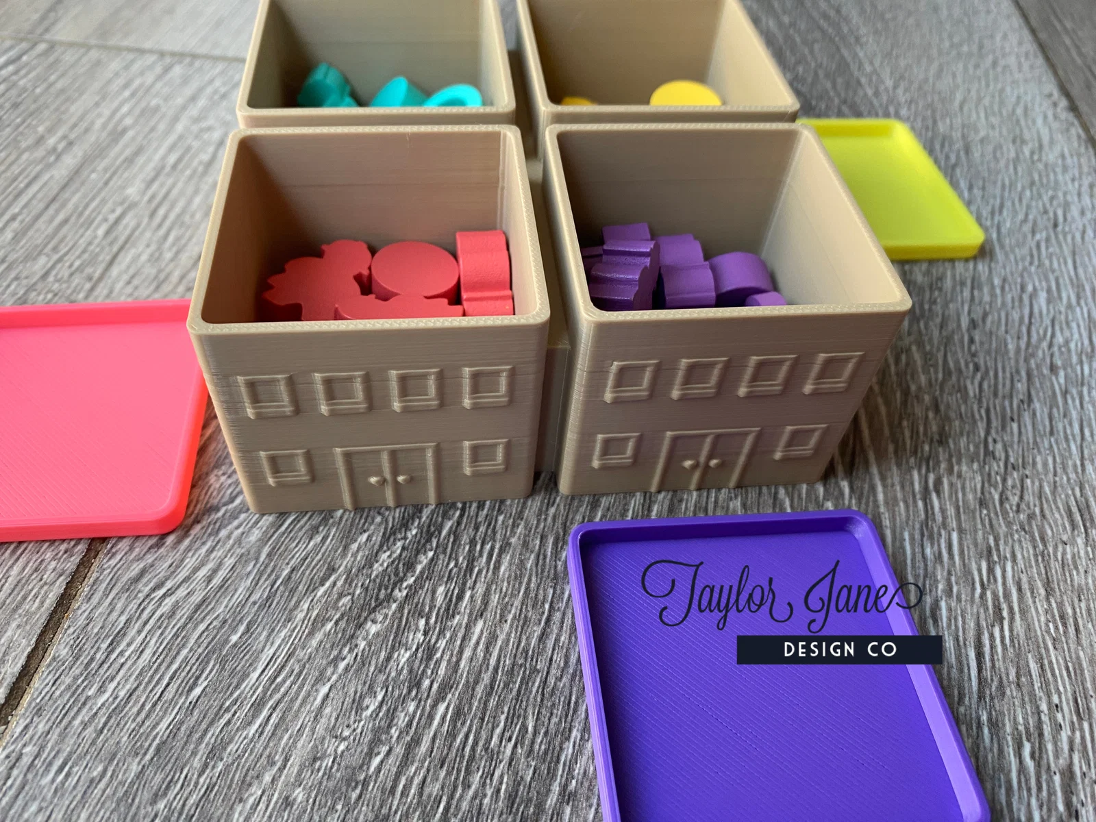 Một game về thành phố thì cần có insert nhìn giống như một thành phố! In mỗi file 1 cái, ngoại trừ phần nắp cho hộp người chơi thì cần 4 cái. Mình in nắp theo màu của từng người chơi.