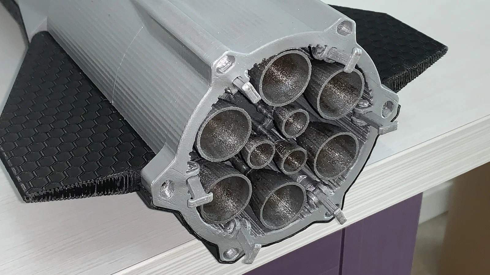 Lỗ cho bottom pin của lower flaps được bịt bằng một lớp 0.4 mm để giảm supports trong các lỗ nhỏ; vậy nên có lẽ chỉ cần supports ở khu vực engines bay.