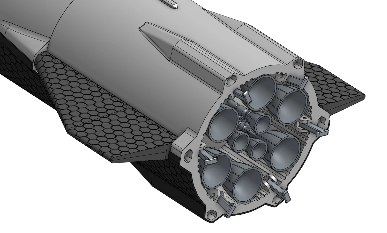 the flaps dùng chung trái/phải (aleron inf x2/ aleron sup x2) (hex heat shield đã được redesign)