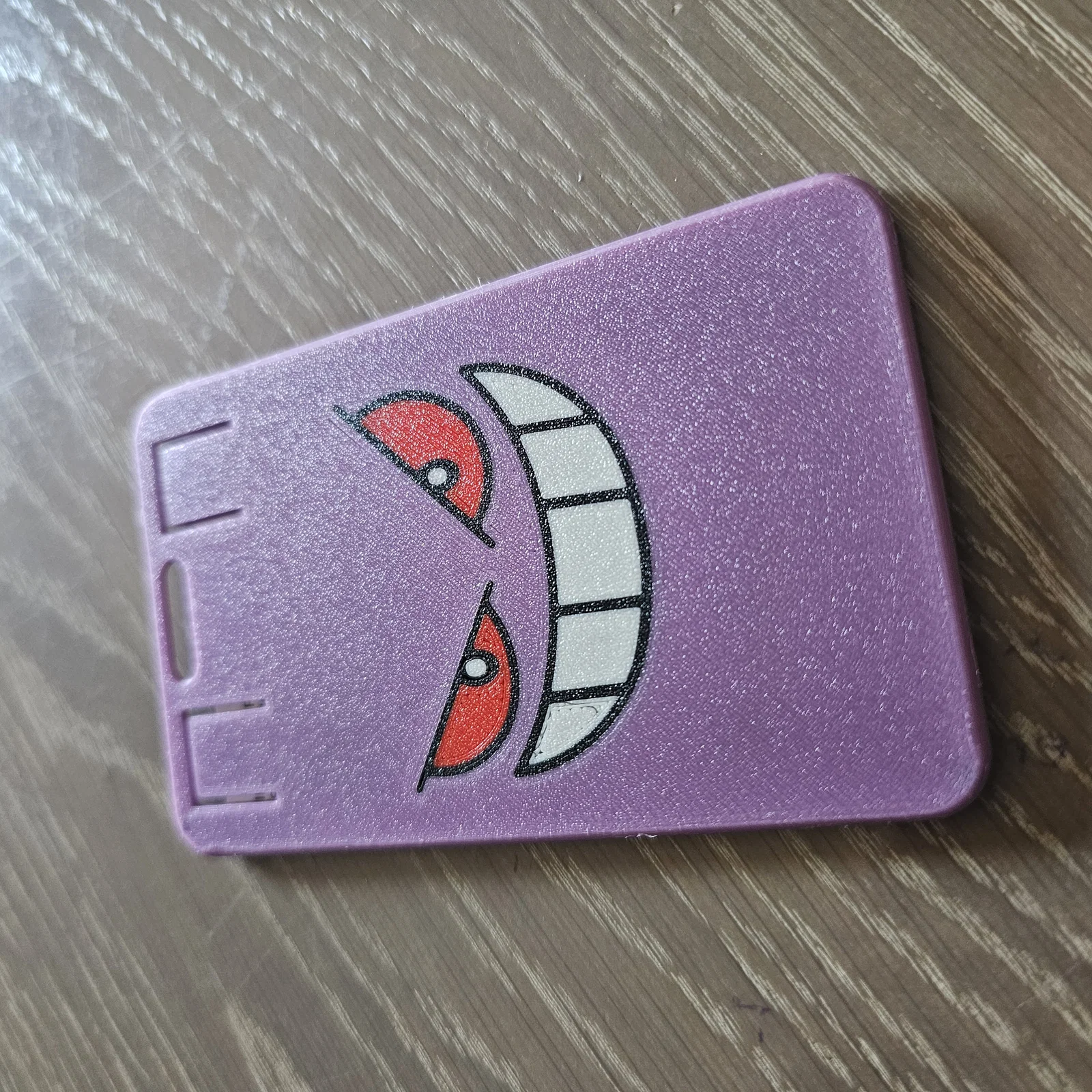 Kẹp thẻ ID/badge chủ đề Gengar Pokémon, thiết kế vừa thẻ chuẩn CR80 theo ISO/IEC 7810 ID-1: 86 × 54 mm. Phù hợp làm holder cho thẻ nhân viên/badge, gọn đẹp và dễ in 3D.