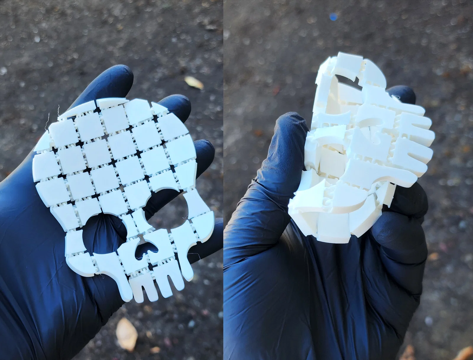 Skull - Flexible Halloween Fabrics thuộc bộ sưu tập flexible fabrics print-in-place cho Halloween. Lưu ý không scale nhỏ, chỉ scale lớn. Nếu khớp bị dính, hãy thử tăng tỉ lệ hoặc đổi filament.
