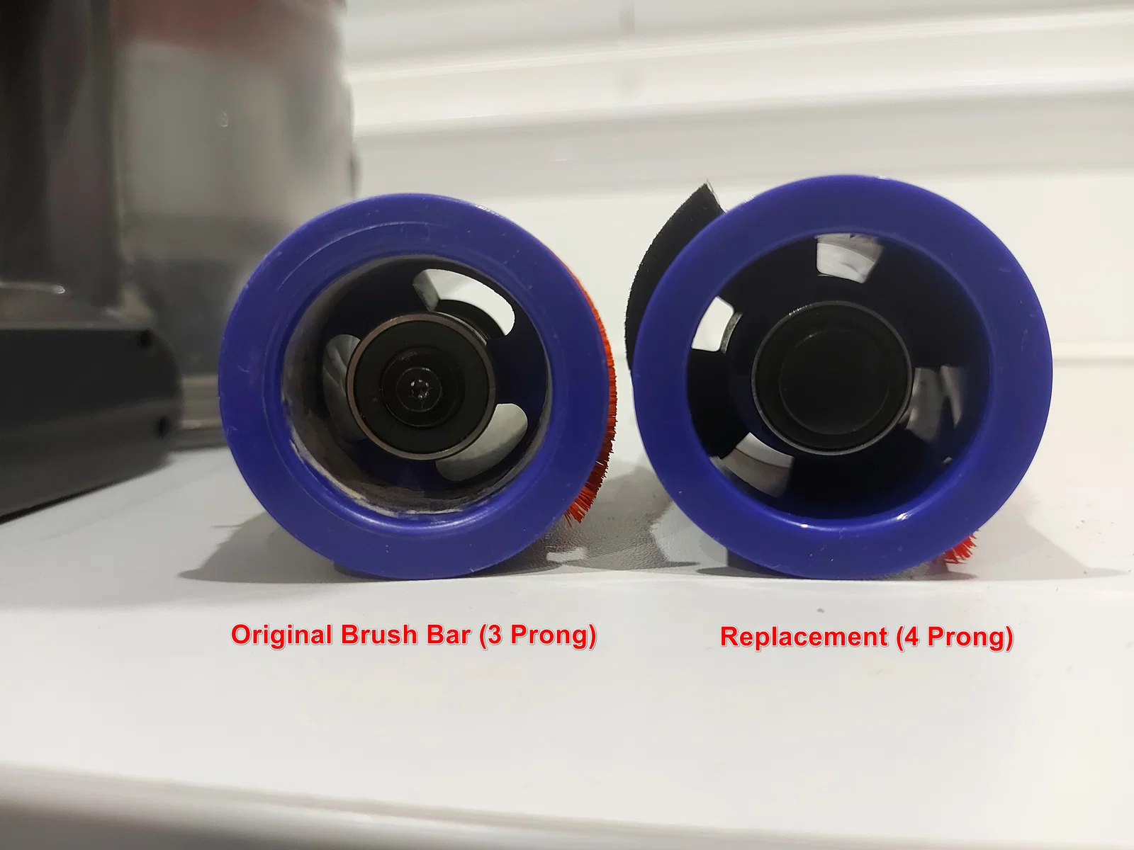 Mình mua một brush bar thay thế cho Dyson V7, nhưng tới lúc lắp mới phát hiện brush bar mới dùng cơ chế khác để ăn khớp với motor. (Xem ảnh so sánh hai kiểu)