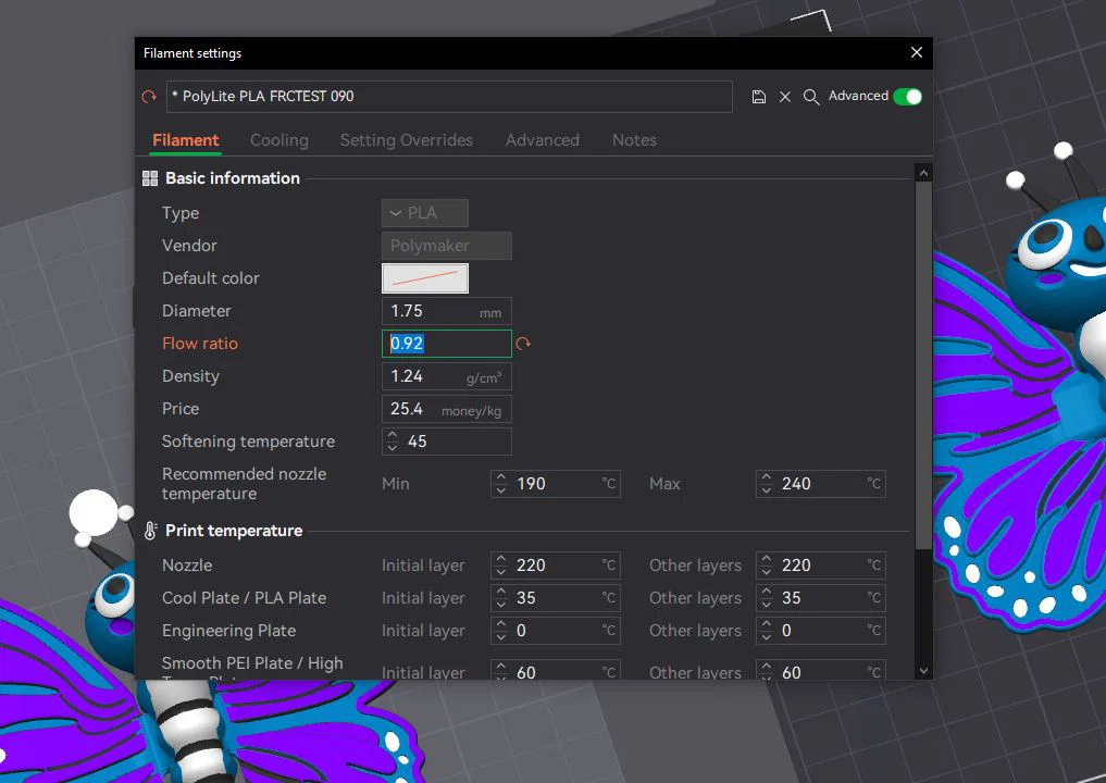Ngoài mạng có những công cụ Flow Rate chính xác hơn, nhưng sẽ cần thước kẹp (calipers) và tính toán một chút. Tụi mình thích cái này như một lựa chọn thay thế: 3dprintbeginner.com/flow-rate-calibration