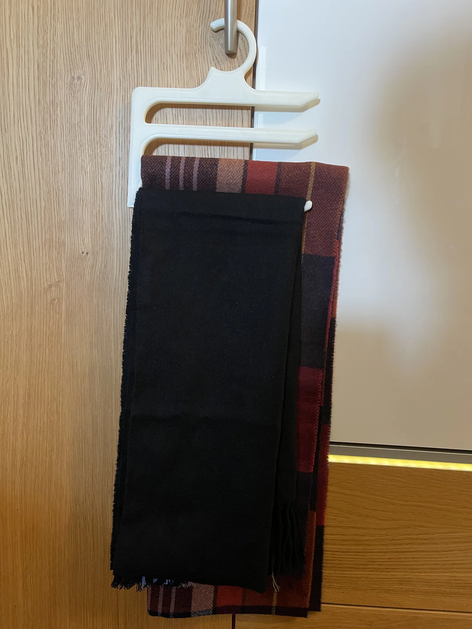 Giá treo cho 3 khăn choàng. Nhờ vậy có thể treo lên để tiết kiệm không gian và khăn không bị nhăn.