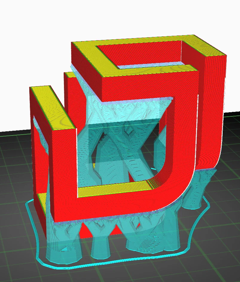 • Sử dụng cấu trúc hỗ trợ dạng cây (tree support): Đây là yêu cầu bắt buộc để in các phần nhô ra mà không làm hỏng bề mặt sản phẩm.