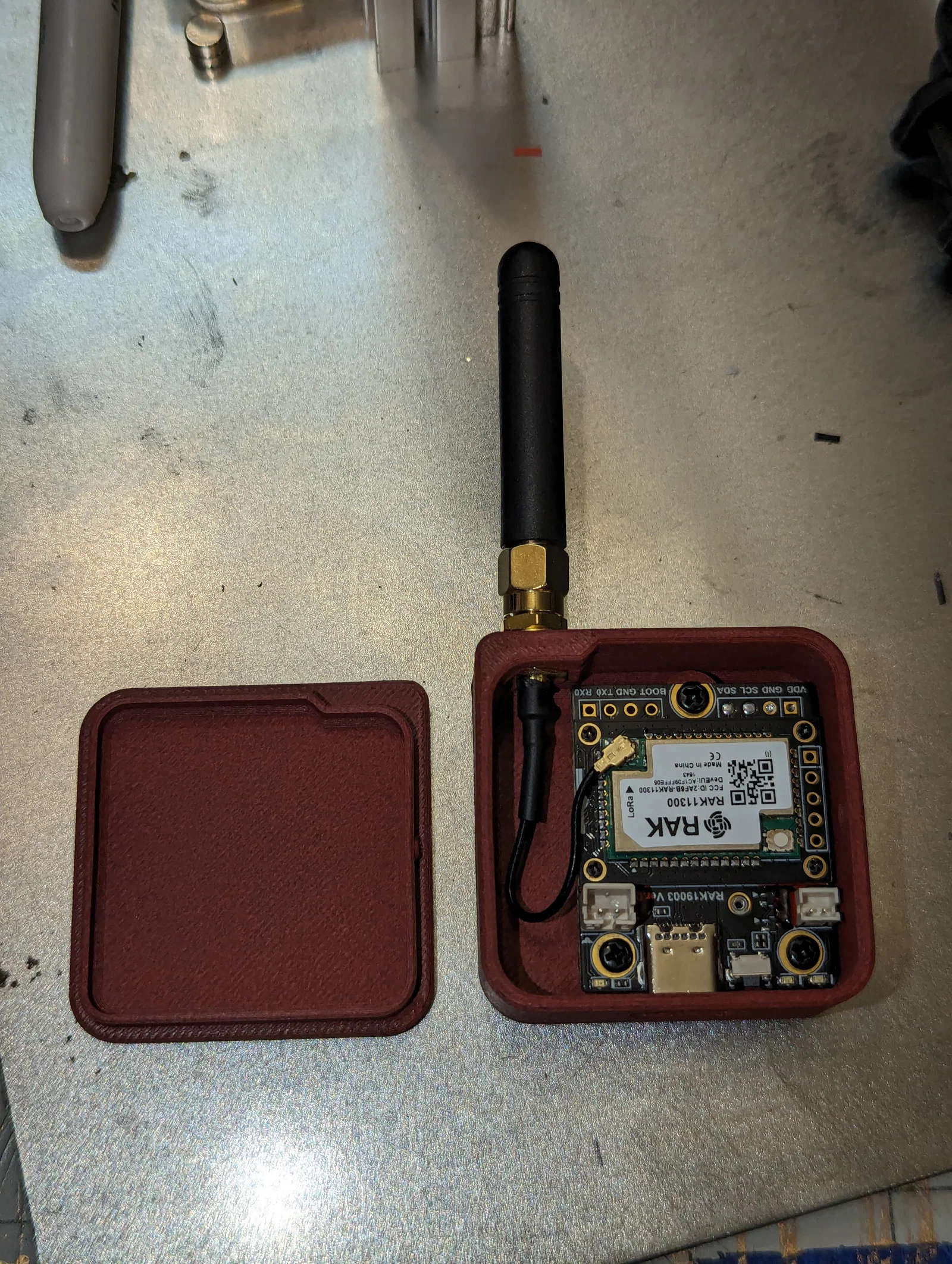 Đây là một cái case đơn giản cho rakwireless RAK19003 Mini Base Board để, khi kết hợp với các Core Module RAK4631 hoặc RAK113100, tạo ra một node Meshtastic rất gọn kết nối USB. Mục tiêu của mình là làm cái case tối giản nhất có thể nhưng vẫn tiện sử dụng. RAK19003 được bắt bằng 3 con ốc M2.5 (mình dùng luôn ốc đi kèm các bộ RAK). Nắp chỉ cần bấm “snap” vào là khớp, giữ khá chắc nhưng tháo ra cũng không khó. Có sẵn một lỗ để gắn cáp anten SMA to U.FL nếu bạn muốn dùng anten rời.