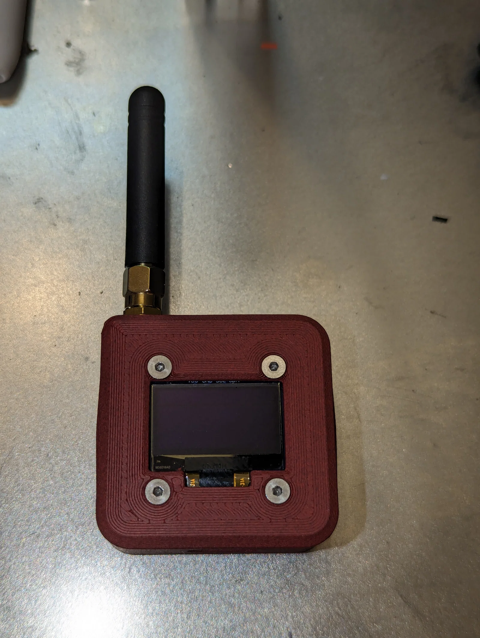 - Lid-OLED.stl: có khoét lỗ cho màn hình OLED 0.96". Màn hình có thể dán bằng tape/keo, hoặc bắt bằng 4 ốc máy M2.5x3mm đầu chìm (countersunk) (mình phải cắt ngắn vài con 6mm vì lúc đó không có sẵn 3mm).