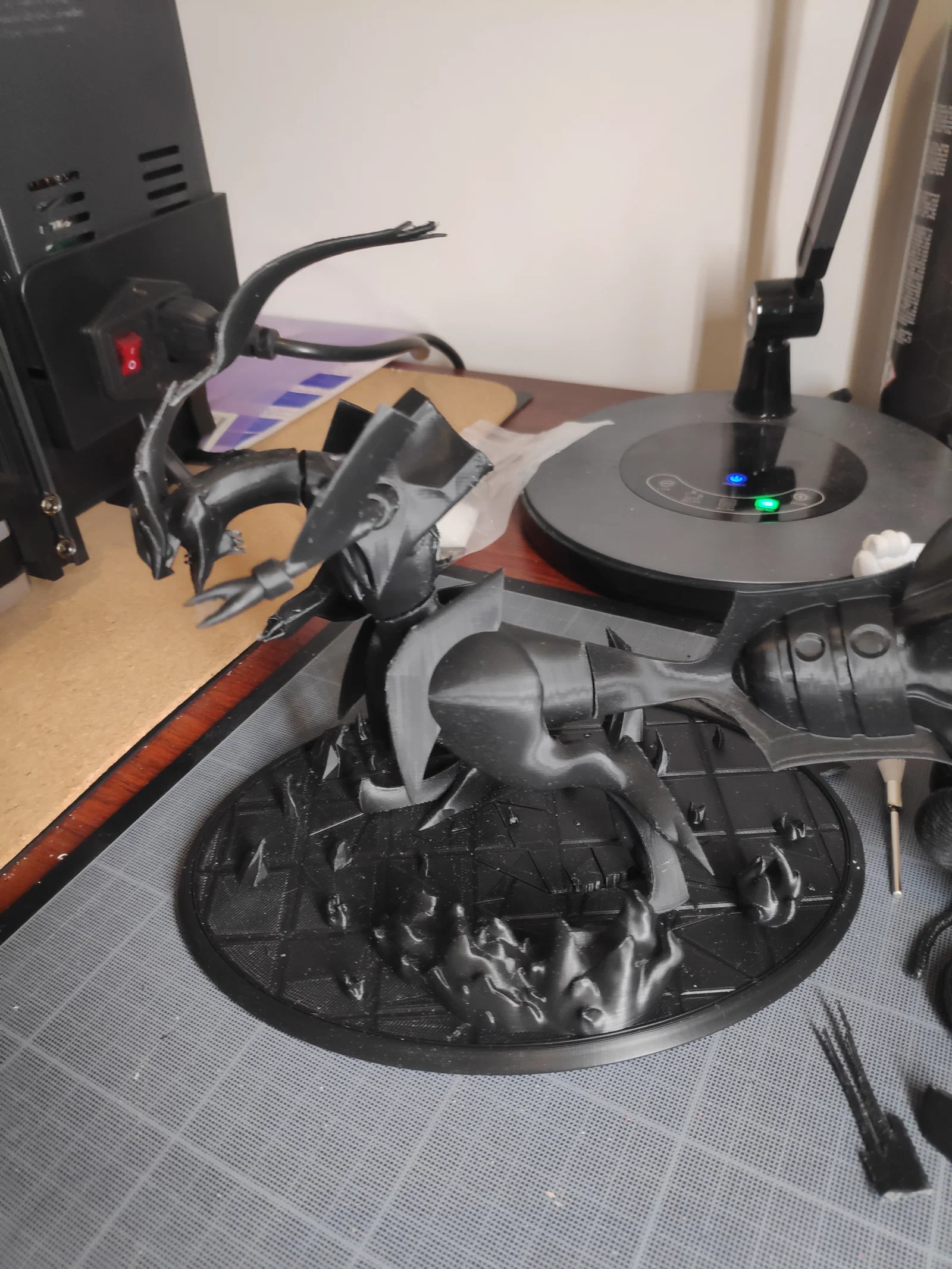 Phần 2: Phần chân. Dùng tree support hoặc grid support. In với layer height 0.10mm để lấy chi tiết. Infill 15%, pattern gyroid. Thời gian in khoảng 8h10 phút*.