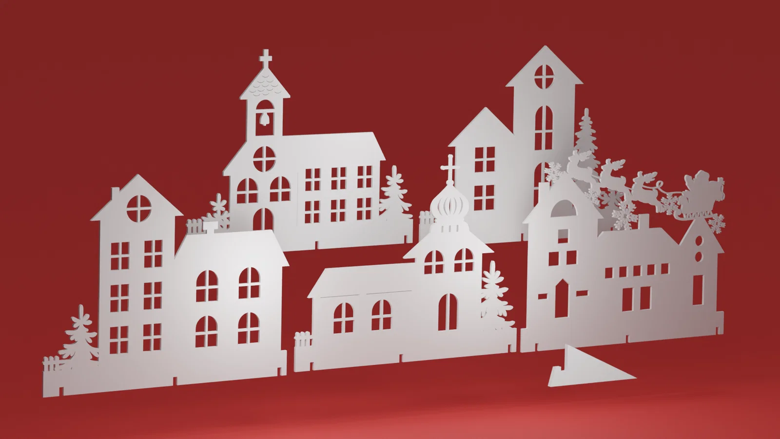 Mẫu trang trí cửa sổ Giáng Sinh gồm 5 kiểu nhà silhouette có thể thay đổi và xoay tùy ý, thậm chí chồng lên nhau. Dày 2mm, vừa Prusa Mini+ (180×180), khuyên in face down để đẹp nhất.
